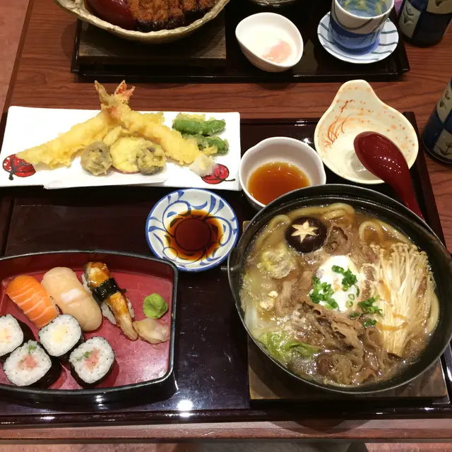 牛肉烏冬鍋天婦羅壽司併盤御膳