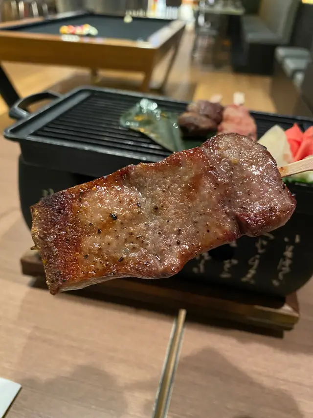 呢間啲串燒全部都好好味🤤尤其係白鱔‼️同牛舌‼️十分推介!鮮鮑魚 $時價 🐚鮑魚係用鮮鮑魚嚟燒,口感Q彈,我而且調味到位,食到鮑魚嘅鮮味,🌶️最後先食到七味粉嘅辣。大推👍🏻月見免治雞肉棒 $48🐓雞肉打到好滑,入邊仲加咗少少雞軟骨打到碎晒,食落口感好脆🤤。加埋蛋黃🍳,濃郁嘅蛋黃同醬油味同雞肉好夾。🤩👍🏻牛舌芯$68🐄牛舌好林好滑👅,淨係用咗鹽同埋胡椒調味🧂,但係都食到牛嘅香味,而且厚切,大大槐。好滿足。🤤超級推介‼️鮮白鱔$98 🐟白鱔個皮燒得好香脆👍🏻,食嘅時候好似食緊薯片咁有脆嘅聲音🗣️。魚肉好肥,肉質好滑,入口即溶,好香魚油味。🐠一定要試‼️日本牛油扇貝 $時價🐚上碟用扇貝個殼裝住,仲配埋日本壽喜菇,同鮮冬菇。扇貝切咗薄片,上面撒左芝麻同埋少少辣椒增添風味。🤩扇貝食落有鮮味而帶有咬口,同菇嘅爽脆完全相反,食落好有層次。最後用咗鮮冬菇薦底,炒過嘅菇真係好香牛油味。🤤日本紅豆綠茶蕨餅 $48🫘蕨餅口感好軟,挺身,Q彈。外邊果上綠茶粉🍵上面再加左日本紅豆蓉同埋金箔,賣相好吸引。🤩紅豆蓉嘅甜味可以中和左綠茶粉嘅苦澀味。而且凍凍地,好refreshing。👍🏻奶黃鯛魚燒 $36🐟鯛魚燒即叫即整,嚟到嘅時候外面仲係好脆。🤤佢個粉漿唔係好似pancake咁鬆軟嗰隻而係,有啲有嗰的Q彈。👍🏻中間嘅奶黃醬好豐富,好黏口,有香濃奶味又唔會過甜。🤩…查看更多