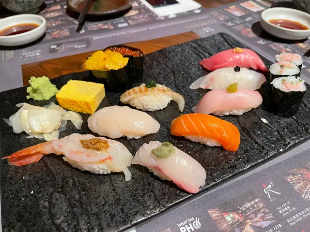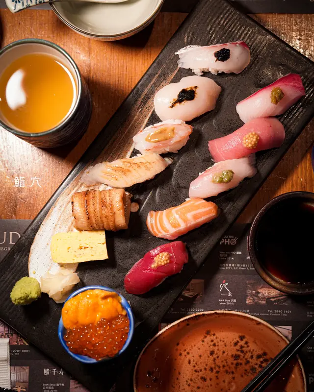 跟同事八月飛東京,未出發先興奮,今晚就邊吃邊計劃行程。既然計劃遊日本,今晚就吃一頓豐富的日本菜,作為出發前預賽。餐廳以黑色為主調,好酷!內裏地方寬敞闊落,設有多張圖枱、長枱,座位不少,最喜歡是馬蹄型二至三人座位,好舒適。最吸晴是牆上的壁畫,兩條栩栩如生的大魚活靈活現,很美!還有那個日式小舖屋,滿有日本色彩。厚厚的餐牌,選擇不少,有刺身、壽司、新派卷物、天扶良、前菜小食、沙律、串燒、一品料理、炸物、爐端燒、鐵板燒、食事和 甜品。******************************先上特上壽司拼盤 Deluxe Assorted Sushi Platter ($468/12貫)件件色澤亮麗,好新鮮。有海膽三文魚籽杯、三文魚、吞拿魚背、𩶘魚、大拖羅、帶子、火炙左口、燒長海鰻、玉子等,相當豐富。最愛當然是海膽三文魚籽杯,海膽甘香油潤,三文魚籽鮮美,兩者同食,鮮上加鮮,爆燈!還有大拖羅,色澤粉紅,肥美油潤,魚味香濃,吃至滿口魚油,正!之於其他壽司也很優質,滿意!******************揀了兩款爐端燒,月見自家製免治雞肉 Minced Chicken with Egg Yolk ($48)混入軟骨碎,軟骨變成碎粒,雙重口感更吸引,吃時蘸上醬油蛋黃,更加鮮香。燒白鱔 White Eel($78)底面同樣燒得金黃,魚皮香脆可口,脆卜卜很吸引。潔白的魚肉肥美油潤兼嫩滑,味道不俗,鹹鮮有至。本配備三款食鹽, 包括有喜馬拉雅山岩鹽、柚子鹽和抹茶鹽, 但都用不上......******************三款天扶良都很出色,薄薄的炸漿,香脆而不油膩,讚!冬菇釀蝦膠 Shrimp Paste Stuffed in Shitake Mushroom ($58/1 pc)菇香爽口,釀上鮮美彈牙的蝦膠,非常味美。帶子紫蘇卷 Scallop Rolled in Perilla ($58/1pcs)好鮮嫩,加上富獨特味道的紫蘇,配搭特別!粟米芯天扶良 Baby corn ($18/2pcs)好爽口清甜,也不錯!******************最後再來一客白燒日本鰻魚佐柚子胡椒 Grilled Unseasoned Eel with Yuzu Pepper ($178)燒至金黃,帶點焦香。以白燒製作,更能嚐到鰻魚的鮮味,肉嫩鹹香,配上柚子胡椒,辣辣地,好有風味!------------------------------原來好友已用心地編寫了整個十天行程,而我真的沒有出一份力,所以這頓飛日本前預賽晚餐就由我當老闆,以報答她的腦力。…查看更多