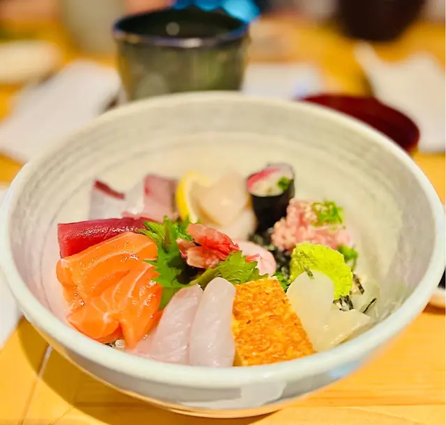 六角都算係灣仔嘅隱世小店,隱藏喺星街月街😂,一直都聽到有啲同事話幾好,所以擺咗喺我to-eat list好耐。我叫咗個特上雜錦魚生飯定食 🍱($178 plus 10%),無話邊樣特別出色,因為每樣魚生都新鮮軟嫩,仲好爽口,唔係梅梅咁。有好多種魚生🍣,好似三文魚/帶子/甜蝦/白身魚/碎吞拿魚腩。有一種魚生喺丼飯係比較少見,應該係鯖魚,好好味,爽身香甜。不過我覺得個飯🍚有啲太濃味,會搶咗魚生嘅味道。睇返其他人嘅食評,因為係赤醋飯(?),可能係個人味問題啦。個定食仲包埋茶碗蒸🥚同雪糕🍦,無咩特別。💁🏻♀️侍應語氣態度非常‘特別’😂,比中環以前某間出名3碗魚生飯嘅日式料理店有過之而無不及。但有同事叫佢加咗3次飯,佢都無問題,似乎又唔太差🤔🤔🌟環境唔錯,唔會逼。我哋幾個人坐咗幾耐下吹咗好耐水,都無點明示暗示我哋要快啲交枱。價錢喺灣仔金鐘食魚生嚟講算係咁。不過要抵受得住侍應特別嘅服務態度先好嚟😂…查看更多