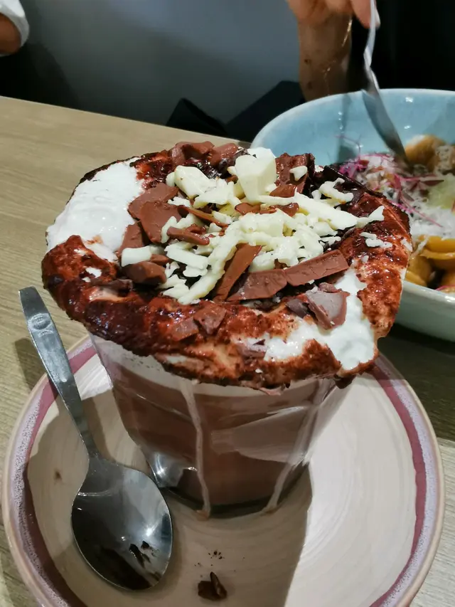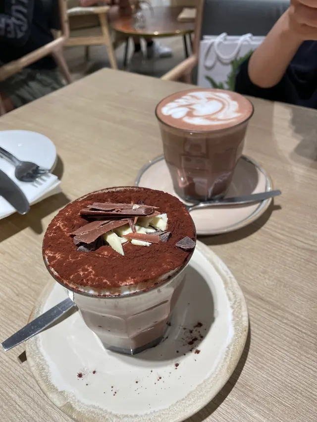 特濃朱古力平衡得好.味夠濃面有一層凍cream,形成冷熱層次口感面朱古力碎加添視覺享受牛肝菌貓耳味道平均得好腦耳朵剛好,內保留口感牛肝菌汁香,食落喉嚨舒服擺盤配搭用心,整齊.莞茜苗香辣大蝦意粉莞茜苗香菜令濃香意粉加點清新大蝦煮得剛好,留爽口感汁是微辣,反而是食後才微辣一下. 不膩而有層次. 呢樣唔錯,除非你是一心追求啖啖香辣的人,可能會覺唔夠辣. 焙茶鮮奶個人覺得係近女性既口味,我個人比較喜歡濃而甘帶微苦的那種. 但這杯不是不好飲,滑而微香,上枱時,杯和杯碟也是溫的. 不知道是巧合還是有注意細節. 這種狀態我個人覺得是最好,令食物整體温度保持,不會一到器皿就令食物快速降溫冷掉.Tiramisu入口先淡淡咖啡香味,食到中間酒味出黎喇. 上枱夠凍冇溶,仍挺身,不會太甜,外形整齊,面有脆脆,增加口感層次,不錯不錯. …查看更多