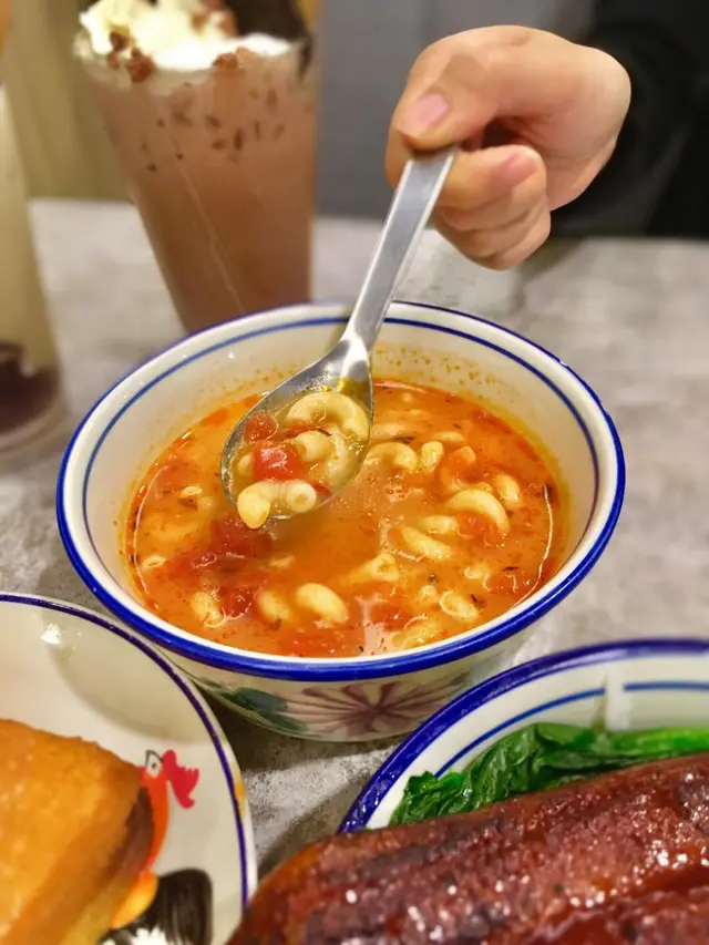 鰻魚份量好跨張,有整整一大條😱,見師傅用左傳統的鰻魚甜豉油黎燒,味道甜甜地,而且肉質好肥美,所以每一啖都食到鰻魚個油脂☺。叉燒方面,見面頭好似掃左層簿油咁,閃令令,肥瘦比例大概二八比,所以食落個咬口鬆化得黎,又唔會太肥。大食既B先生表示呢兩個餸都好岩送飯,如果可以有得添飯就正啦🤤。.見到有新鮮蕃茄肉係湯入面,所以飲落真係幾開胃。另外,湯入面既香草令到成個湯既味道唔會過份單調,配埋通粉食真係唔錯😋。不過,香草味略嫌比蕃茄味重,如果後者的味道可以更濃郁,一定會更加好味😋。.店員送上黎個時仲係熱辣辣,應該係即叫即炸🤤。多士炸得幾金黃,唔會話太多油,面頭既煉奶和入面的花生醬亦唔會過多,所以食落去個時唔會太大罪惡感🙈。.+8紅豆好立克平時紅豆冰既奶底轉左做好立克,感覺好新鮮🤣。紅豆份量都夠多,飲落啖啖都有,整體黎講係一個幾特別既飲品。.+$8 脆爆華田華田面上放左平時早餐個種脆脆米,所以飲落多左種脆口。不過,華田的味道可以更濃的話,相信會更加好飲。…查看更多