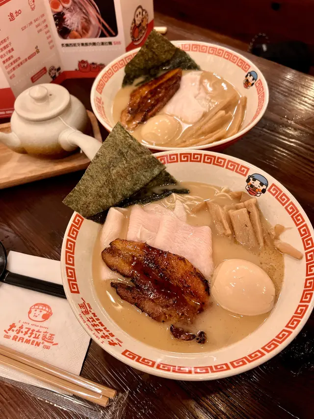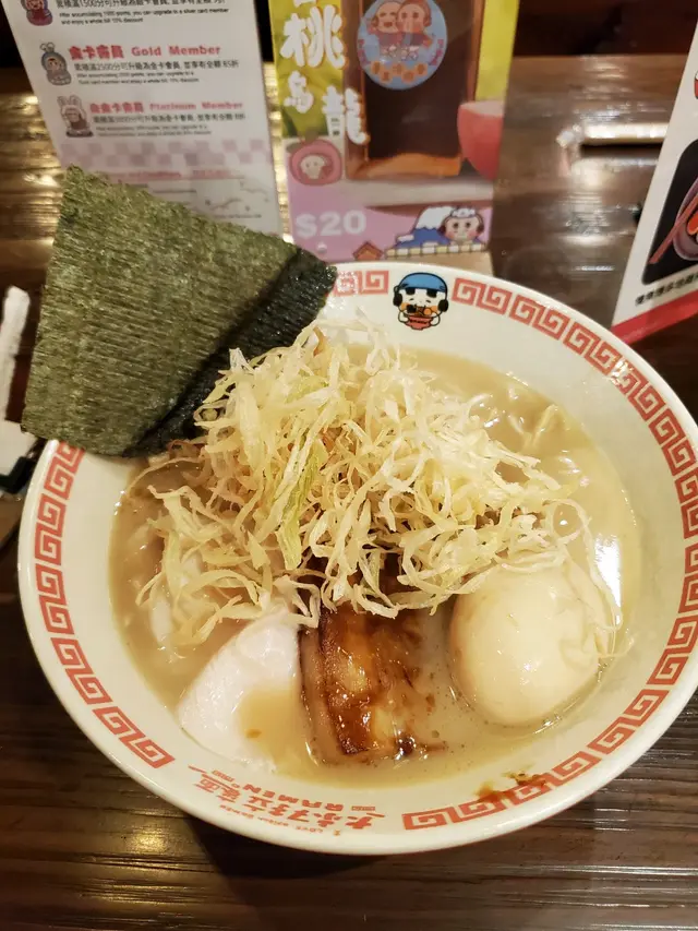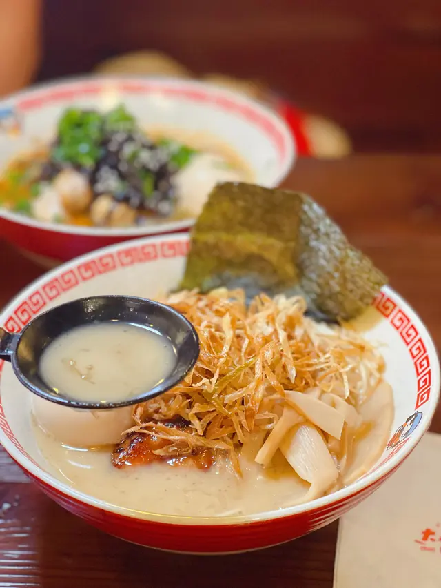 去開荔枝角拎蛋糕,順便去D2 place食個lunch~ 呢間以江大叔為主題嘅拉麵店,店內每個角落都充斥住大叔,又幾可愛喎🙆🏻♀️▪️特盛和牛骨湯拉麵▪️特盛濃厚雞白湯拉麵和牛骨湯一入口就超濃牛味,雞白湯同樣入味,但相對和牛骨湯算係清淡啲,可以視乎返你係咪重口味人士去揀💁🏻♀️ 另外,兩碗都要齊晒炙燒西班牙黑豚肉同慢煮博多地雞。豚肉肥瘦適中,燒得好香口,雞肉就煮得好嫩滑,選擇困難症人士可以好似我咁揀晒兩樣肉😂▪️大阪燒餃子餃子脆口,上面鋪咗大阪燒必備嘅木魚同紫菜碎,再淋上大阪燒汁同沙律醬,口感豐富大叔拉麵 📍荔枝角長順街15號D2 Place二期3樓314號舖…查看更多