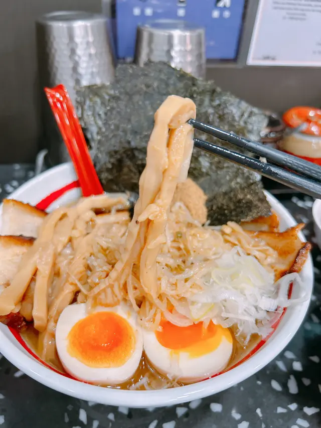 🍜 特盛魚介豚骨拉麵($123)配料豐富份量十足,有6塊紫菜、2塊叉燒、1隻溏心蛋,筍同芽菜各1份,而且可以因應自己嘅食量同口味選擇麵量,醬汁多寡同有冇蔥;湯底用豬筒骨,豬背脂同雞骨等材料熬成,加上魚介粉,濃厚嘅湯底更加係鮮味十足,麵條較粗身,食落彈牙有嚼勁而且好掛汁;叉燒大塊得嚟頗厚身,肥瘦適中,而且燒得肉香軟嫩不油膩;溏心蛋生熟程度啱啱好;芽菜爽脆帶麻油香味;筍入口爽甜🍅 伊台風($98)伊台風係蕃茄芝士加魚介豚骨湯底,完美咁將意式風味同豚骨拉麵糅合一齊,湯底味道比較似意式蕃茄濃湯,蕃茄控嘅朋友應該會好鍾意;粗身麵條好掛汁,配料方面除咗紫菜、叉燒,筍之外,仲有酸甜嘅蕃茄粒同細滑嘅芝士🍺 拉麵用手工啤($50)呢枝手工啤酒係餐廳同本地酒廠love Craft聯乘,樽身印有好可愛嘅卡通公仔同寫住酒嘅種類Cold IPA,啤酒帶有淡淡嘅果味唔太甜,酒味亦唔重,同拉麵嘅濃湯好夾之餘唔會搶左湯底嘅味道,酒身順滑易入口,氣唔算多,慢慢飲都唔會頂胃…查看更多