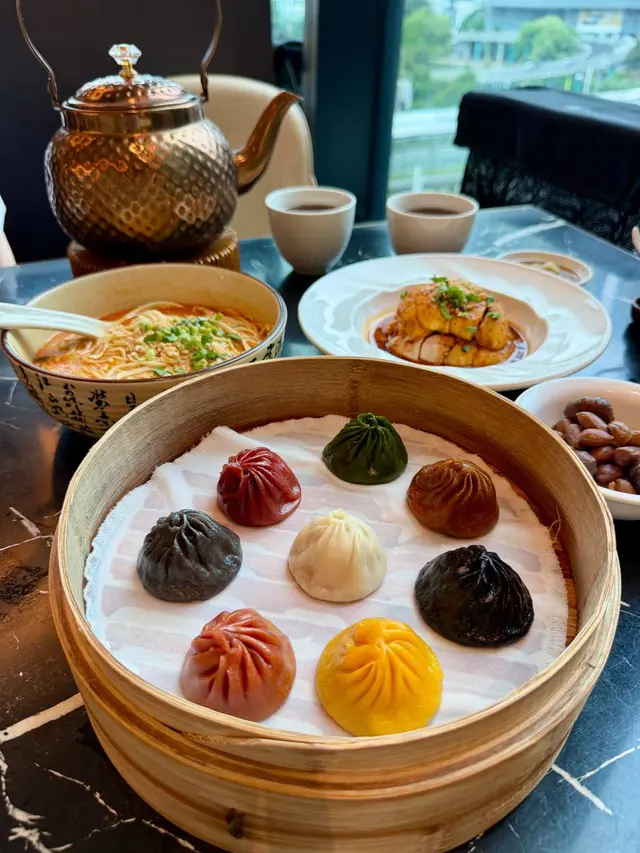呢日嚟咗呢間餐廳食lunch,估唔到平日午市都幾多人嚟食,叫咗啲餐廳嘅經典菜式😎特色皇朝小籠包呢個係招牌小籠包,一籠有齊8隻口味,色彩繽紛🥰 店員有逐一同我地介紹每款嘅名稱,由最淡味嘅原味一路食到最濃味嘅川味。每款都好爆汁,真係要小心睇熱🫢 當中我最鍾意鵝肝同埋芝士口味,夠晒有特色。成都口水雞可以另外加錢轉雞髀位,不過我就冇轉,覺得呢份口水雞都唔算多骨,另外雞胸嘅部份又唔會太柴🐥 麻麻辣辣,幾過癮🌶️皇朝擔擔麵湯底略帶點辣味,而且花生嘅味道好濃郁,每條麵都好掛汁,個人認為係個飽肚又必食嘅item🍜 好有京滬菜嘅風味。前茶及茶芥另收菜芥及前菜收費,呢度提供普洱茶,前菜就係滷水花生同埋栗子等嘅小食。呢餐最印象深刻嘅一定係八色嘅小籠包,隻隻都有唔同口味,大家都可以嚟試吓😄…查看更多