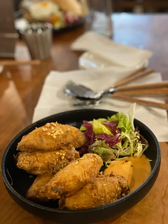 因為平日工作忙碌,難得假日當然想揾個舒服地方hea全日啦,呢間近排hit爆嘅cafe,餐廳大,座位坐得舒服,而且仲非常文青。😌干貝公主意粉 $98 (7/10) 🍝大大粒帶子十分爽口,超多黑松露,味道突岀,連忌廉什菇白汁都很重黑松露,質感很幼滑,我鍾意!💛龍蝦蛋潛艇堡 $148 (7/10) 🦞上面流心煎蛋,一切開蛋漿澎湃咁湧出來。麵包夾住幾舊龍蝦肉,加埋生菜、沙律醬,又幾正、🤪特製雞中翼 $88 (7/10) 🐓炸粉唔算厚,而且十分脆卜卜,啱啱炸起,特別香口,配送咗是拉差蛋黃醬,味道又幾夾。😋炸薯條 $68 (7/10) 🍟幼版波浪薯條,配拉差蛋黃醬,好食到停唔到口。🤩桔梗奶昔 $58士多啤梨奶昔,加埋餅整碎入,幾有奶昔,很有咬口。🍼價錢係一般cafe以上,不過,食物製作一啲都唔馬虎,本來想試吓呢度嘅燉飯,係招牌菜之一,原來只有晚市供應,唯有下次再嚟食過,以下係午餐嘅餐牌。…查看更多