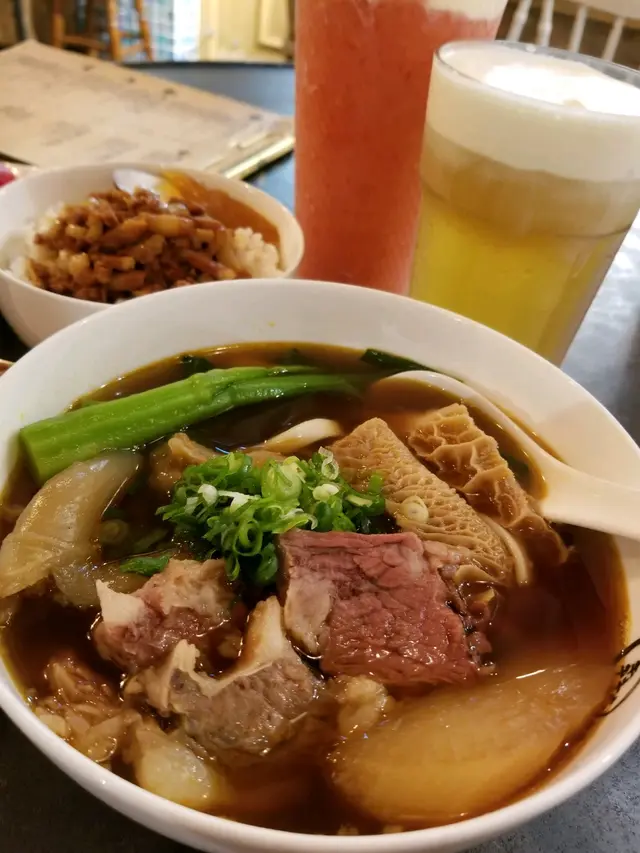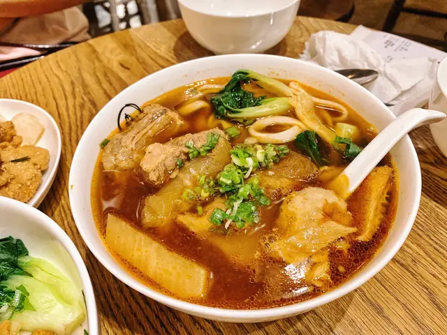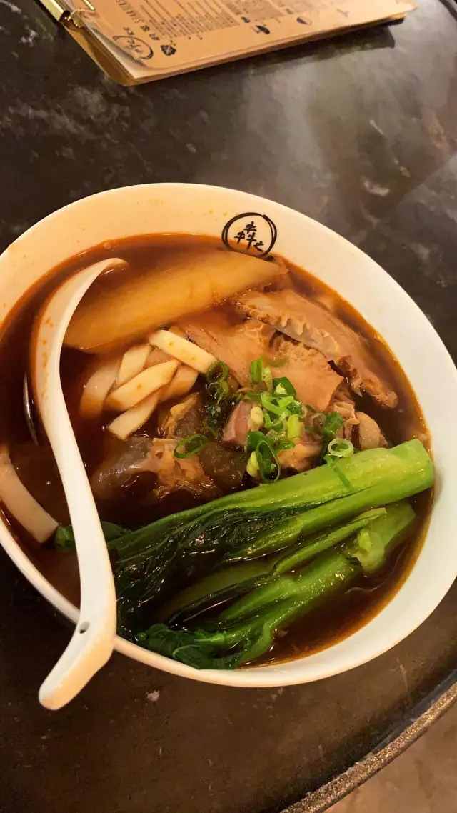 喺銅鑼灣行完街諗住搵餐廳醫肚咁啱行過見到都幾有打卡feel就俾佢吸引左~犇之三寶麵 $88湯唔錯 微微酸辣 開胃👍🏻牛筋 入口即溶 正牛腩 肥瘦適中 炆得好腍 牛味香(唔係騷味)牛肚 無乜特別 少少煙靭~黑松露炸蝦餃每日推介menu菜略嫌黑松露味不足 唔夠過癮~牛肉捲餅好睇個人口味捲餅夾嘅係牛𦟌肉,無乜味 軟腍適中夾左酸菜醒胃又配埋青瓜青瓜係想中和味道定係等你無咁濟(?)唔識食😵💫不過我就唔鐘意食喇~炸蝦餅可以唔洗叫酒樓薄罉,不過個涵係蔥+蝦滑+墨魚滑(?)炸得好脆嘅,不過都唔係好鐘意食~總結:可以淨係叫主食,小食可以慳番🤫…查看更多