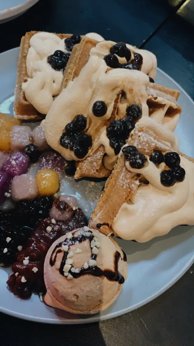幫襯左好多次,非常推薦既甜品店。炙燒焦糖布甸麻糬窩夫🧇🍮🍨我覺得係間店最好食既甜品。面層淋左自製既布甸醬,再加上用手槍炙燒成既焦糖。口感好豐富,有焦糖既焦脆,加好creamy既布甸同雪糕,雪糕好有奶香味,但唔會蓋過布甸,再加上窩夫中間的麻糬,煙煙韌韌。🤤🤣珍珠奶茶窩夫🧇🍨☕️🥛另一款覺得好好味既窩夫。窩夫上淋既cream同配既雪糕都係奶茶味,岩哂奶茶控。窩夫幾厚實,可能因為淋左cream,唔太脆,整體比麻糬窩夫偏甜少少。芋圓幾有芋香味,屬於有咬口的質感,我個人幾鐘意。如果堂食比既芋圓同紅豆會比較多些,外賣就比得四五粒芋圓。但整體都係大份量,一個人真係食唔哂。凍藍蝶豆花玫瑰荔枝梳打🦋🌹🍹玫瑰、荔枝味都唔太明顯,可能因為我揀左少甜,但唔知點解就係對佢情有獨鍾。影相靚之餘,因為已點左兩款甜品,飲品清清地反而覺得無咁膩。每次都係跟套餐點,比單點抵好多。…查看更多
