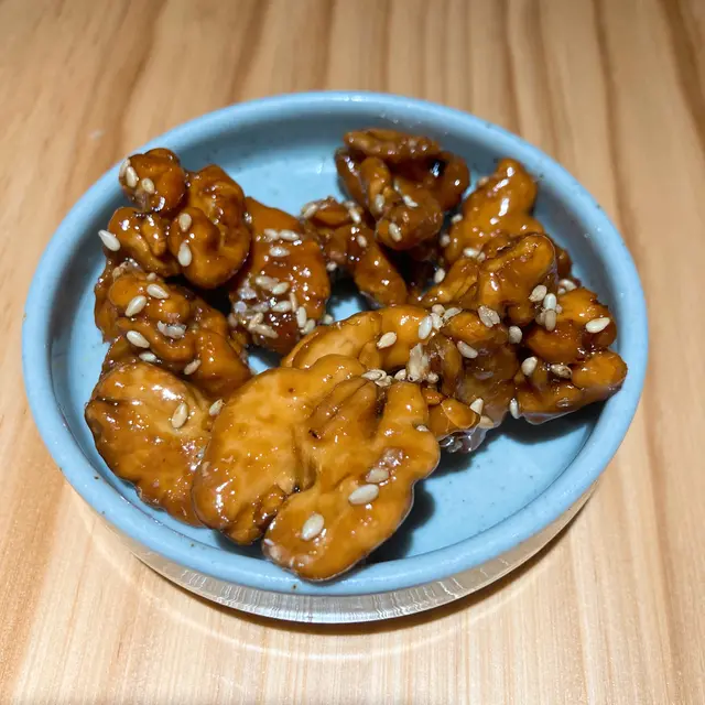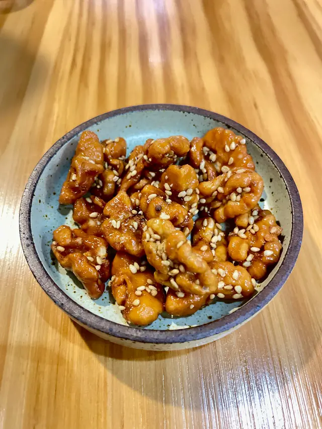 久仰「木玥巷」的大名,原來不只開在屯門,港鐵朗屏站附近也有分店。窩夫與蝦子餅二月初終於有機會光顧,當晚不用等位便能入座。先送來小食,琥珀合桃太好吃了,又香又甜又脆,窩夫吃到停不了口。宜蘭三星蔥餡餅($36)一客四個,味道不錯,不會太油膩。台式炸物拼盤($58)有鹽酥雞、甜不辣、四季豆和杏鮑菇,鹽酥雞最有驚喜,外面脆卜卜,入面肉汁豐富。第一次光顧當然要試招牌菜,木玥招牌紅燒牛肉麵($98)有齊牛𦟌、牛筋、肥牛、蘿蔔和豆干。三牛當中窩夫最喜歡牛𦟌,滷得入味又夠軟腍,而且肉味很濃。湯底清甜,紅蘿蔔和白蘿蔔亦很甜。牛肉麵很少有豆干,沒想到吸滿牛肉湯的豆干表層還有點脆。窩夫與蝦子餅多年前在台北貓空吃過水蓮一試難忘,所以點了樹子炒水蓮($84)來回憶一下。水蓮非常爽脆,印象中第一次吃樹子,味道不錯。蒜香蟹肉帶子炒飯($96)很足料,蟹肉一梳梳的,用蒜蓉來炒特別惹味。…查看更多