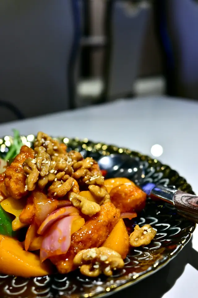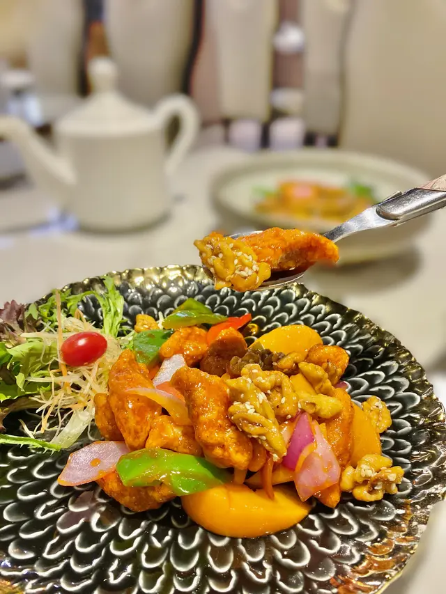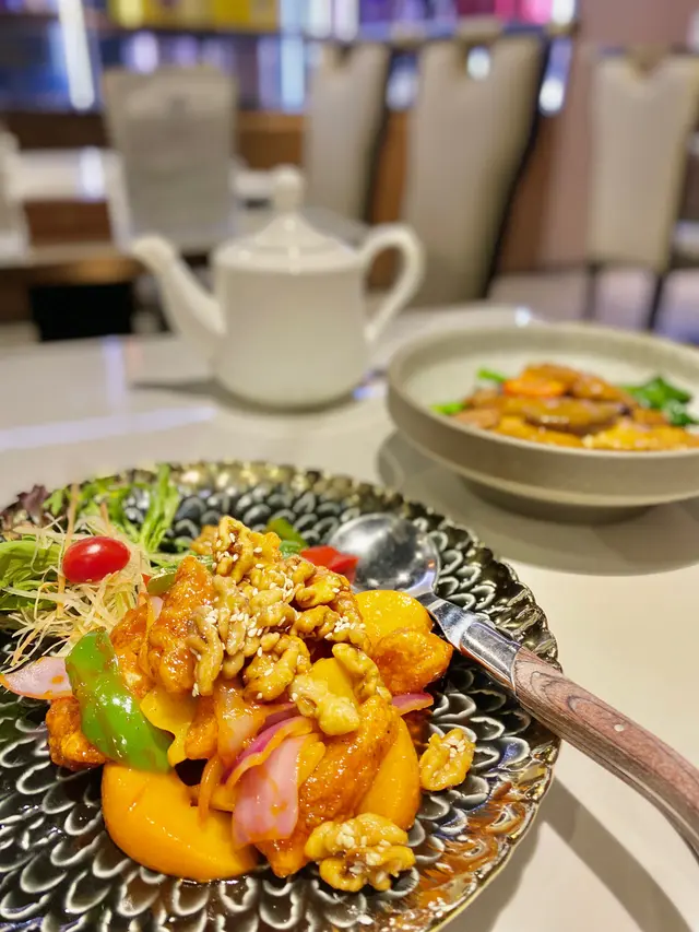 睿海御宴 (大坑)📍大坑浣紗街1-5號浣紗閣1樓-💖幾個月前試過佢哋嘅點心,賣相擺盤講究之餘,食材用料都非常上乘!✨食得出絕非一般酒樓嘅貨色,係能夠媲美酒店中菜廳嘅等級!🔖所以一直bookmark 咗要搵食個晚餐試吓佢地嘅小菜!👫我地得兩個人叫咗4個小菜-🥢黑椒鹽酥炸牛油果 $88第一次試炸牛油果!表面酥炸得香脆但唔油膩,牛油果熟成程度剛好,有外脆內軟效果,完全冇草青味,帶有微甜!-🥢羊肚菌日本玉子豆腐 $168平時係酒樓食呢道菜式印象中油膩感好重,煎炸過嘅豆腐加稠密度高嘅芡汁令到滿口都係油而且好咸!-但呢間中菜廳嘅芡汁比一般稀薄,而且玉子豆腐咬落去時唔會噴到滿口油,油膩感出奇低!羊肚菌味道相當濃郁,精華滲透高湯之中令豆腐完全吸收!連伴碟嘅菜心都好入味!-🥢琥珀蜜桃咕嚕肉 $198佢哋嘅琥珀合桃係非常出色,大粒香脆可口,而且甜度適中,出面食唔到,完全停唔到口!-酸酸甜甜嘅咕嚕肉炸粉好薄,外脆內軟又多汁好開胃!-🥢乾炒A5 和牛河粉 $188聽說乾炒牛河看似極普通菜式,但能夠炒到河粉條條分明,而碟底冇油的話就好考師傅牌!的確呢碟粉牛河食到尾真係唔見有油!-食材用咗A5 和牛,所以特別鮮甜!而河粉都應該唔係普通貨色,口感比一般煙靭得多!乾炒牛河都可以咁出色,犀利!-💓最後仲送上咋喳糖水添!…查看更多
