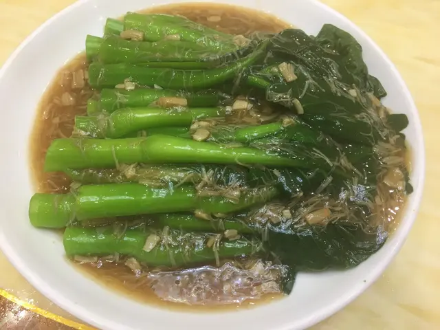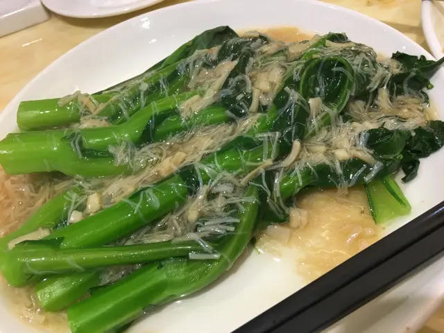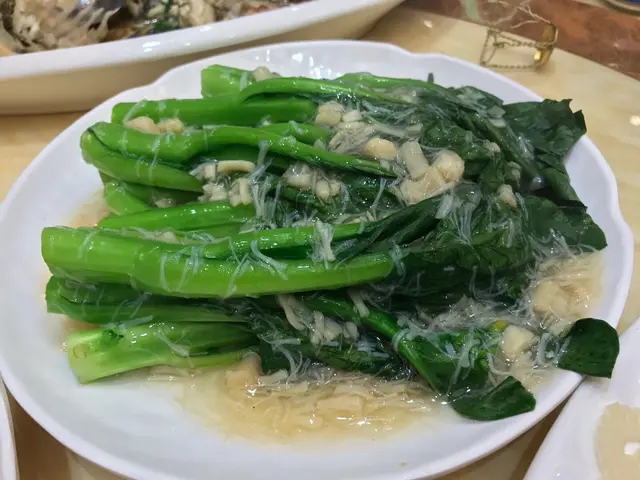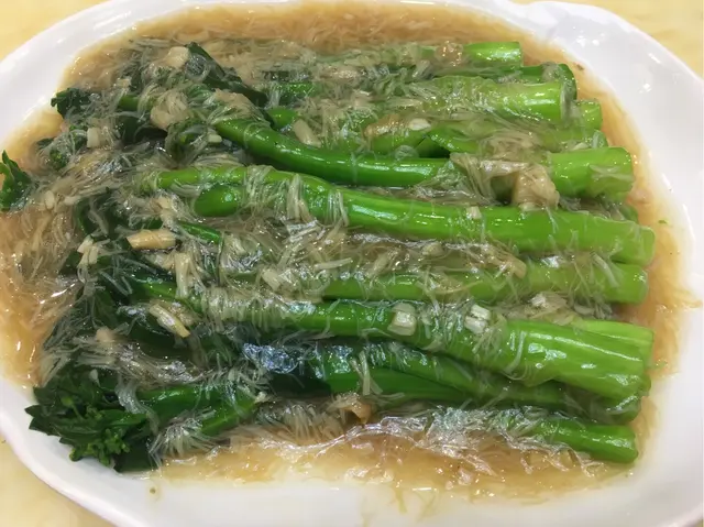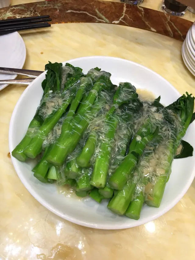 7. 蒸海斑(8/10分):本來係雲腿玉樹蒸海斑。。。但上枱,只係得豉油,腿5見、玉樹也5知去咗邊。不過,我地5理。。。有餸上枱已感恩,都係斑,只係5同煮法,算吧。。。條斑係蒸得恰到好處,d肉係滑。不過,佢地用咸豉油,5係用甜豉油,所以扣分😅8. 瑤柱扒時蔬(6/10分):瑤柱菜芯,賣相失色,調味ok。可是。。。芡汁形成一嚿嚿膠狀,5太掂