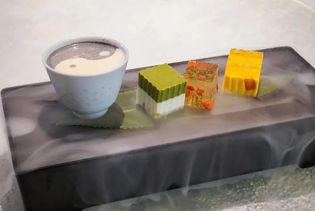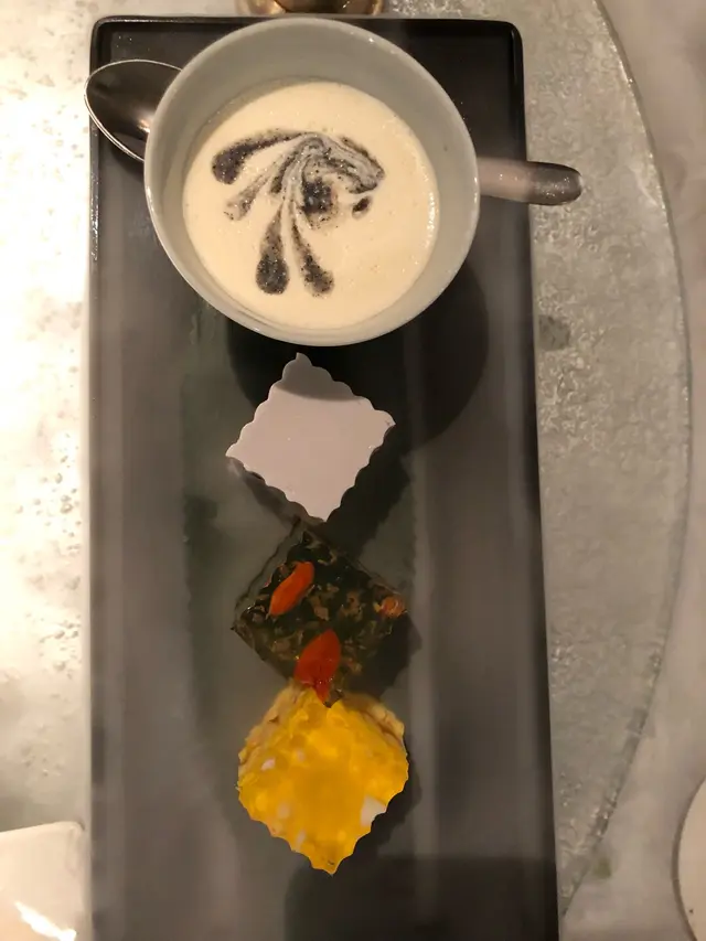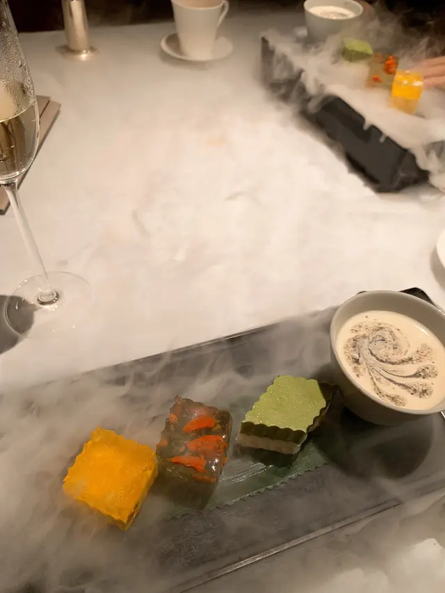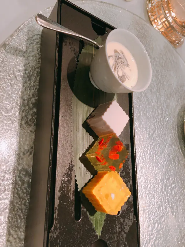 明閣其中一間我幾鐘意嘅中菜,今次係第二次食,仍然保持水準。Ming Court Gourmet Tasting Meun1️⃣明閣三小碟2️⃣原隻南非4頭湯鮑扣海參3️⃣玉環清蒸東星海班柳4️⃣彩棠蟹肉豆腐羹5️⃣鹹檸M9和牛炒飯6️⃣甜夢仙境6款菜式之中,我最推介係三小碟裏嘅叉燒,蜜味濃同鬆軟。下次黎一定要散叫一碟食,哈!甜品都好出色,一上台已經仙氣十足,成張枱都煙霧離漫,當中有椰汁抹茶馬豆糕、黑白芝麻凍布甸、杞子桂花糕同燕晶凝,全部都幾好食,唔會太甜。…查看更多