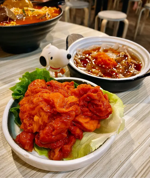 用大量豬骨熬出嚟嘅湯底,飲落真係幾鮮甜。加埋麻辣/酸辣,層次感即刻提升不少。值得一讚,飲完都唔會好口乾👍🏻湯底辣度由小小辣至到特特辣,好貼心!麻辣小窩米線-小辣 雞翼、雞肉絲、滷水大腸、蟹柳、芝士腸、豬肚絲辣味後勁強,麻香味亦好突出。食得辣嘅建議揀中辣或以上,因為落嘅辣度唔夠重手。雞絲份量超級多,好滿足!滷水大腸好乾淨夠哂肥美。酸辣小鍋紅薯粉-中辣多酸秘製腩肉、豬軟骨、手打魚腐、紅腸呢度嘅秘製腩肉瘦肉較多,但食落爽嫩唔柴口。豬軟骨味道酸酸甜甜,炆得夠軟糯好入味!手打魚腐要必點!!!皮薄起皺,索湯一流。魚腐鬆軟嫩滑,我好鐘意!!小食方面兩款都係煮完之後雪過嘅!甜酸齋 呢個酸甜味道夠開胃,如果覺得碗米線/薯粉辣嘅朋友呢個用嚟解辣一流。貴緣雞絲火山 好香沙薑汁味道,加埋榨菜片,爽脆得黎調和雞絲嘅單一口味。表面更灑上辣椒粉,少少辣勁惹味。…查看更多