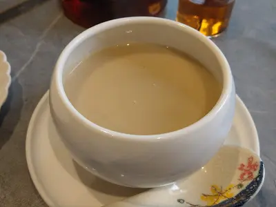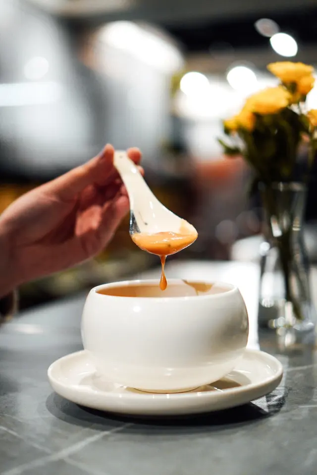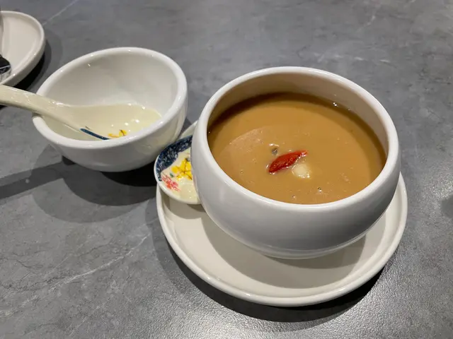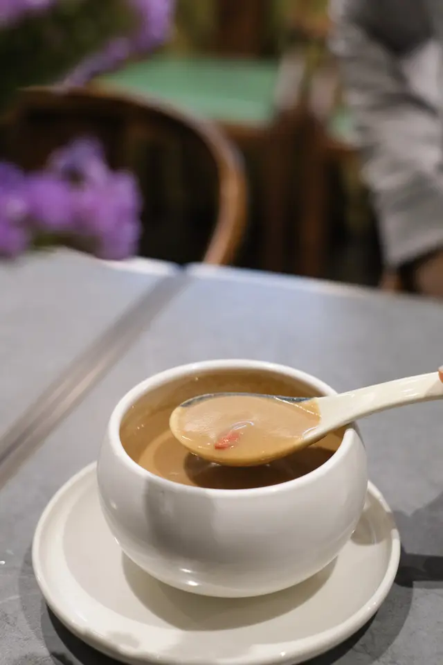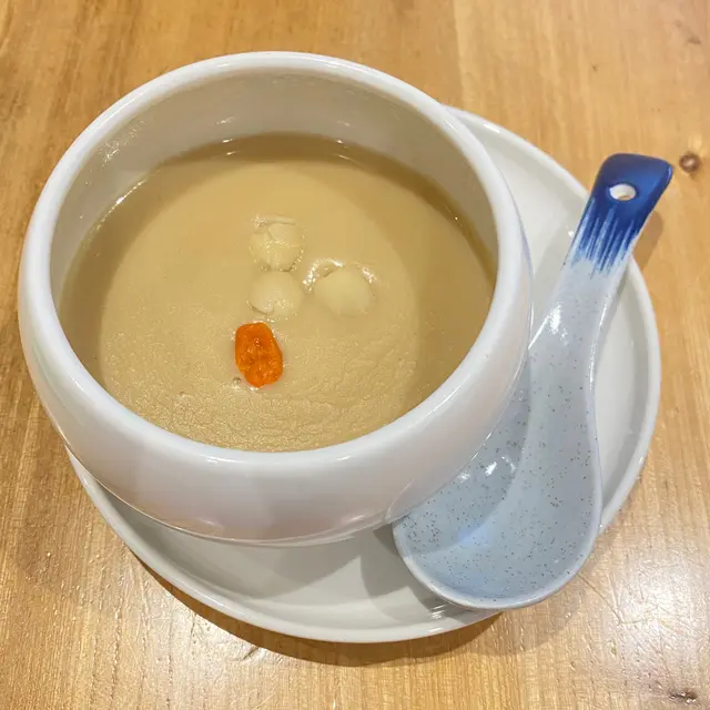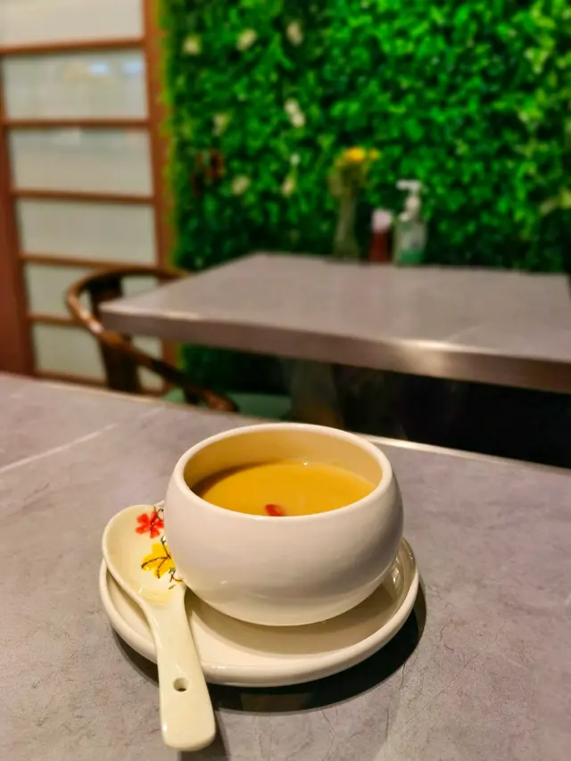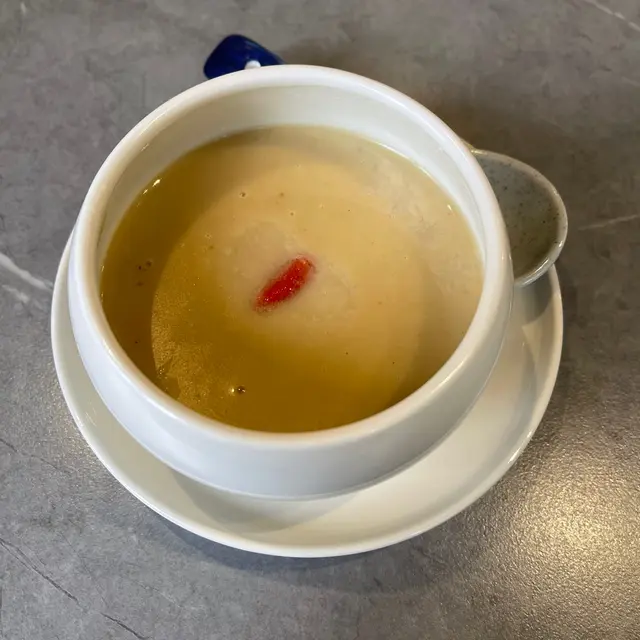 7月18日星期日,我和父母到中環的珺吃午餐。珺是東方素的分餐廳。與東方素不同,珺是純素餐廳,而且定價較高。有中菜之餘,也有西式餐點。餐廳佔用全層,地方不算小。離開時才仔細打量門面。櫃台上有六瓶無酒精香檳。每一款我都想喝。步出升降機,右面有一個小空間,可以讓四人一組客人用餐。另有一個房間,可供客人私人聚餐。左邊是較大的用餐區。這邊的餐桌大多靠窗邊。窗下有沙發椅,對面則是低靠背椅。一排的大窗戶讓餐廳能足夠採光。空間感亦較大。餐廳中間是廚房。廚房後面有洗手間。女洗手間內有三個厠格,但空間狹窄。我們點了二人商務套餐,$398。另加一個湯品。食物份量多,我們三人都吃得很飽。餐廳並不是傳統中菜館,所以客人不一定要點中國茶。店員可以提供免費的水。我們想喝茶,於是便各自點了茶。爸爸要鐵觀音,我要玫瑰,媽媽要荔枝茶。以每位$15計算。每人一個茶壼,並可以續壼。鐵觀音和玫瑰的味道都濃。荔枝味則淡,只隱約聞到荔枝香味。所以,媽媽添加鐵觀音或玫瑰到杯子內,混合荔枝來喝。此套餐的前菜有萵筍絲雲耳配XO醬或牛油果沙律。前者辣,我便選了兩客牛油果沙律。看起來份量很多,其實被那器皿設計騙了。裝食物的空間只有球形器皿上半部份。也幸好份量不多才能吃得完。牛油果軟滑鮮味。沙律菜看起來很新鮮。我猜沙律醬汁是千島醬,甜味會比較多。媽媽喜歡這醬汁。湯品也有兩款選擇。分別是桃膠雪耳粟米豆腐湯和白甘筍紅菜頭椰汁湯。兩款湯我們都選了。額外點了一客雞油菌竹笙素翅(碗),$68。我們選了各自的湯,然後嚐一點別人的湯。爸爸要桃膠雪耳粟米豆腐湯。味道清甜。我選了白甘筍紅菜頭椰汁湯。表面有兩片麵包。略脆的口感。湯的味道甜。椰汁味不會太突出,或許紅菜頭的味道比椰汁更濃烈。兩者融合起來感覺搭配。質感不會太稠厚。媽媽要雞油菌竹笙素翅。跟往常喝到的素翅不同。這裡有雞油菌,多了菌類濃郁芳香的味道。那味道不會一吞進喉嚨裡便消失。還會縈繞在口腔中一陣子。加深我們對湯的味道的記憶。主菜有八款,可以任選三款。我們選了玫瑰叉燒、法式芥末蛋黃醬素蝦和雪裡紅新肉絲炆米。玫瑰叉燒是這裡的招牌菜式。本身我對叉燒的喜好不大。所以,這裡的叉燒沒有給我特別的好感。味道有點甜,就是我不喜愛叉燒的原因。這道法式芥末蛋黃醬素蝦,素蝦外層的粉漿不厚。不會炸得十分焦脆。咬開薄薄的脆皮外層,素蝦是爽滑的口感。本身已沒有令人飽膩的感覺。再沾上法式芥末蛋黃醬,微微刺激著味覺和嗅覺,誘發我們的食慾。雪裡紅新肉絲炆米。是較普通的一道主菜。那並不代表味道不好。新肉絲處理得不錯,我們嚐不到原本那怪怪的味道。另外,此套餐可讓客人多加$30要一客甜品。共有四款甜品。沒有限制點甜品的數量。我們點了脆皮燕麥奶和生磨蓮子露。脆皮燕麥奶是推介甜品。而且,很少吃到純素的炸奶。我早已想好要點了。外層的米粒炸得十分脆。那粗糙的表面讓我們冒著因燥熱而弄傷口腔的風險。裡面的燕麥奶帶有少少甜味。液體燕麥奶變成固體,密度變多了,就像濃縮了的燕麥奶,感覺會變得飽膩。廚師心思細密,甜品搭配水果和芒果醬。炸奶沾上香甜鮮味的芒果醬便減去一點點飽膩感。水果的酸甜味能解膩。這生磨蓮子露給我們驚喜。我是第一次吃蓮子露。想不到是那麼清甜。比合桃糊稀一點。沒有那麼膩。稠厚的感覺剛好。口感很綿密。除此以外,亦可多加$20要咖啡一杯。這要留待下一次才可以品嚐了。…查看更多