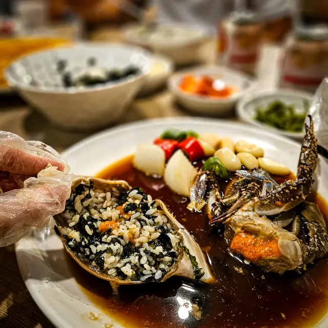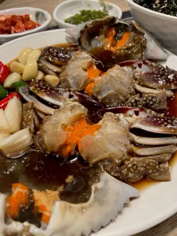 呢間餐廳由韓國人主理,提供多款韓式料理同韓式燒肉,主打招牌醬油蟹🇰🇷💗先送上泡菜、涼拌海帶同薯仔伴菜,全部可以無限refill💗生醬海蟹 ($378/ 2隻)醬油蟹爆膏又新鮮,醬油調味好出色,蟹肉滲透醬油香,完全無腥味,亦唔會搶咗醬蟹嘅鮮甜🦀再將附送嘅麻油紫菜飯一起拌入蟹蓋,甘甜嘅蟹膏混入飯粒🍚💗生醬海蝦 ($278/ 5隻)醬油蝦爽口黏糯,醃得好入味,可以配埋生蒜頭、青陽辣椒一齊食🦐💗韓式菜包肉 ($188)五花肉炆煮得軟嫩,再輕輕火炙表面焦香,一層脂肪一層肉相間🐷再用生菜﹑ 辣蘿蔔泡菜、生蒜、青陽辣椒、韓式包飯醬、辣蝦醬一齊食,口感好豐富🥬…查看更多