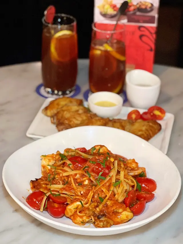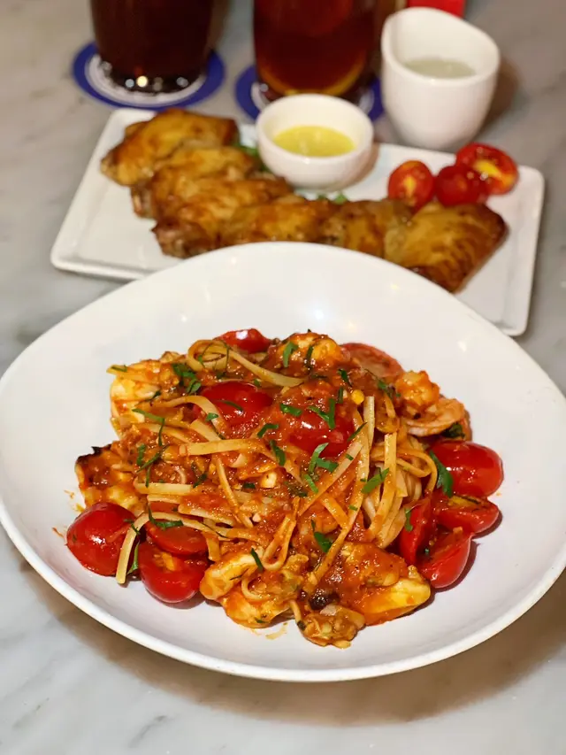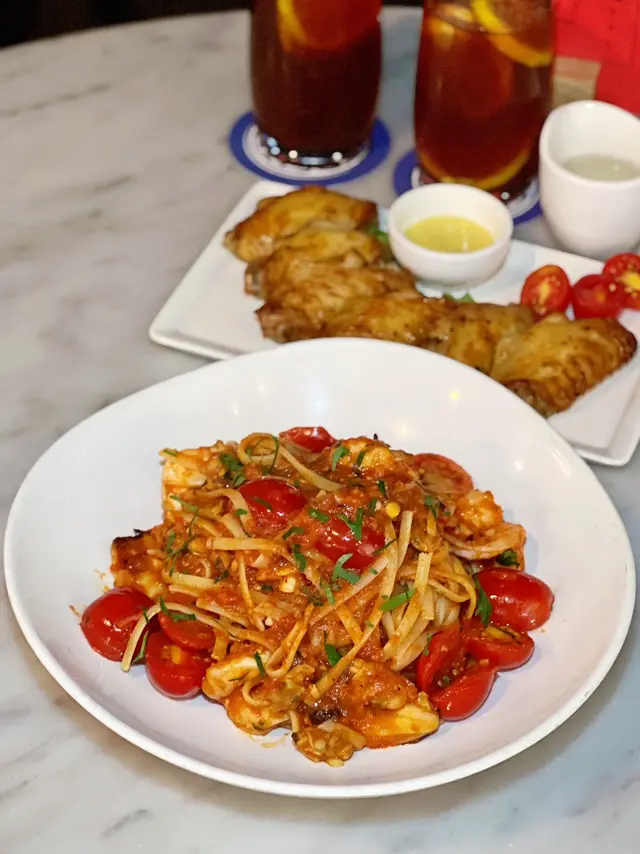 這間人氣連鎖薄餅店其中一間分店位於青衣城二期,主打即點即製的手工薄餅及西式料理。店內環境寬敞舒適,裝潢以陸歐式為主,開放式廚房能欣賞到食物製作過程。意式肉迷薄餅 - $182源自1965年的傳統意大利餅底,由薄餅師傅現場即製。厚度適中的薄餅帶有飽腹感,邊緣極香脆,愈接近中央愈濕潤柔軟;薄餅底塗滿輕怡的雅枝竹醬,又有半溶化的塔雷吉歐芝士富奶香,黏著油香的意式風乾豬面肉、鬆軟多汁的豬肉丸及香脆的合桃,還有青蔥、鼠尾草及羅勒等調味,充滿異國風情。番茄海鮮扁意粉 - $168煙韌彈牙的扁意粉份量十足,掛滿濃稠的香辣番茄醬,還帶點蒜蓉香;不少爽滑彈牙的蝦肉、鮮甜無渣的蜆肉及煙韌彈牙的八爪魚片,多汁的車厘茄更添清新。意式茄醬焗肉丸 - $72五粒爽滑細膩的烤焗豬肉丸,保留豬肉的天然香氣,彈牙又多汁,鋪滿意式蒜香草辣番茄醬,酸甜帶辣很開胃。烤焗雞翼 - $88六隻雞中翼肥美飽滿,咬開雪白的雞肉嫩滑多汁,蘸上蜜糖芥末醬,香甜而不辣更惹味。凍檸檬茶 - $42每日新鮮沖泡的茶底,清新柔和的錫蘭紅茶好香醇,滋味濃郁飽滿,伴隨酸酸甜甜的檸檬清香,更可以無限添飲。…查看更多