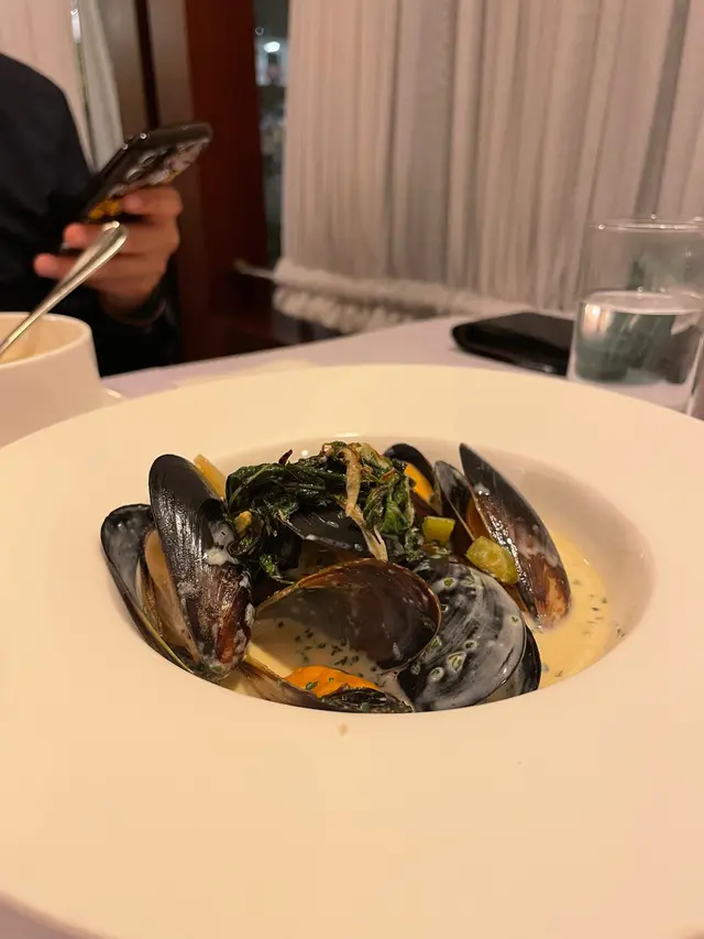 【白酒煮青口】我會給這個青口100分,首先全部都是新鮮的,容易打開,肉質又彈牙鮮味十足,再配合香濃的白酒忌廉汁,差不多想把整個醬汁都喝掉。