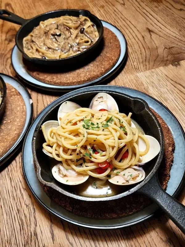 餐廳:Ask For Alonzo地點:上環必列者士街菜式:意大利近地中海省份的菜式餐牌:Tasting Menu包前菜4選1,主菜6選1,同甜品3選1或者餐後甜酒/咖啡/茶,價錢$288加一。某些菜式要加錢。麵包配自家製松露加巴馬臣芝士醬麵包每人有兩款各一片,聞到香噴噴上枱架!分別加有果乾同sun-dried tomato,味道本身甜甜地,烤得外脆內鬆軟,配自家製松露加巴馬臣芝士醬,食落更香滑。Roman Meatballs羅馬肉丸3粒,配番茄醬及巴馬臣芝士 加$38 另加一羅馬肉丸用熱辣辣煎pan上枱,肉丸有牛有豬,面頭加上巴馬臣芝士醬,再加少少黑椒,下底有番茄醬。肉丸唔會死實或者過鹹,味道口感都唔錯,而芝士會拉絲,加上甜甜地番茄醬,非常好味。Sauteed Clams白酒炒蜆配香辣檸檬白酒高湯及香脆意大利香草包 加$48 另加一連殼蜆有十幾隻,雖然唔太大隻,不過都好嫩。個汁味道唔錯,只係微辣,酒味唔濃,加左好多蒜片,辣椒同香草,味道少少酸。配有兩片脆口多士,可以點汁食。Alonzo's Carbonara卡邦尼意粉配風乾豬面頰肉,意大利雞蛋及黑胡椒充滿黃色醬汁al dente spaghetti面頭放有好多香脆鹹香風乾豬面頰肉,再灑上滿滿芝士粉。呢度用唔粗唔幼意粉,少少似烏冬,口感唔錯。醬汁豐富滑溜,適合喜歡重口味人士。Spaghetti Alle Vongole白酒蜆肉意粉蒜蓉白酒檸檬汁炒蜆肉意粉伴意大利香芹 白酒蜆肉意粉用大大隻兜上枱,幼身spaghetti好al dente,灑上香草,同Carbonara比你既味道完全唔同,呢個係比較清淡。廚師貼心將7隻連殼蜆放底,等意粉唔會太淋。蜆非常飽滿同鮮美。調味料有蒜片同辣椒,都好惹味。Cheesecake芝士蛋糕配士多啤梨醬大大件芝士蛋糕面頭加上士多啤梨醬,碟上面再加上紅莓醬同灑上糖霜。芝士蛋糕好滑,加上脆脆餅底同莓醬好美味,唔會太膩,口感似布丁。鮮蘋果汁,鮮橙汁 各$48 另加一鮮橙汁有好多果肉,飲得出係新鮮,唔甜。而蘋果汁就好清甜。今餐食物唔錯,意粉感覺好正宗。地方位於半山上,好清靜。餐廳環境半開放,感覺好chill。外籍服務員態度友好。…查看更多