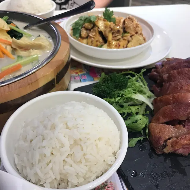 這裏有很多菜式選擇, 我點了一個二人套餐$198, 有鹹香雞, 魚湯腐竹浸時蔬, 脆皮咸豬手, 老火湯和白飯, 加$9紅豆冰和$12 龍鳳檸樂, 最後還點了一個甜品綿花西多士$48。先來兩碗例湯, 老火例湯飲得出沒有味精,清甜潤喉。