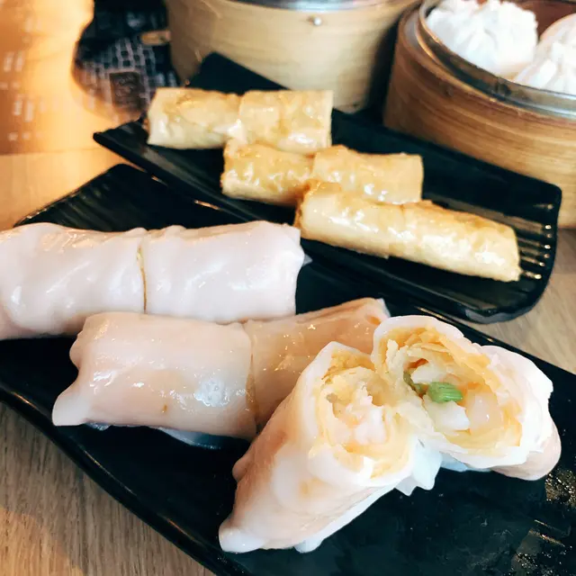 星期六同呀媽去駱駝漆行街,順便食午餐。佢話想食心點(小新叫法🤣),於是我上網就搵咗「皇廷工房點心專門店」同佢食。其實我之前喺觀塘行嚟行去經過餐廳幾次,但次次都閂咗門。因為佢主要做返工日子同早午市🕜,不過原來夜晚時間或者星期日都可以預先包場搞Party🥳。餐廳當然主打點心🥢,不過亦都有麵食🍜。午市套餐相對抵食,$54有一點心加一飯/麵同飲品,啱哂打工仔。點心紙就係枱面張餐紙,想食乜可以就咁同店員落單,或寫上張套餐紙度✍🏻。題外話,餐廳唔收加一服務費。雞肉雲吞米線(原價$34),米線份量唔算多,不過都已經夠飽。米線軟硬度適中,湯底清淡,同時亦落咗唔少粟米粒🌽同有半隻蛋。雞肉雲吞有五隻,🥟雞肉做餡比起豬肉結實,而且中間仲落咗雪耳絲,爽爽的。鵪鶉蛋燒賣(原價$26),呢樣咁傳統嘅點心唔係好多地方有得食,加咗🥚鵪鶉蛋口感好得意。不過燒賣餡好似變咗係魚肉🐟?皇廷蝦餃皇($26),🦐蝦餃王一客有三大隻,餃皮厚薄均勻,唔韌亦唔易穿,而蝦肉就好彈牙。蟹子燒賣皇($24),燒賣亦同樣有三粒,每粒上面加咗啲蟹籽,而下面嘅豬肉無肥膏,抵讚👍。香芋蒸排骨($26),排骨幾入味🤤,係個別兩粒肥膏就多咗啲,而墊底嘅芋頭亦好香甜。鮮蝦腐皮卷($28),腐皮卷炸得有啲油😳,但外皮非常脆口,餡亦飽滿,唔錯。韭黃鮮蝦腸粉($32),鮮蝦腸粉有三條,係飽肚之選,可惜有韭黃令到我食得無咁暢快🙈。茶介每人$5,一盅兩件當然唔少得熱茶啦🍵。總括嚟講,呢餐點心午餐好豐富,飽到夜晚都唔使食😚。餐廳環境幾大,而且四四正正,真係適合一班人包場聚餐。最後,店員姐姐嘅服務態度亦都幾好,醒目有禮。…查看更多