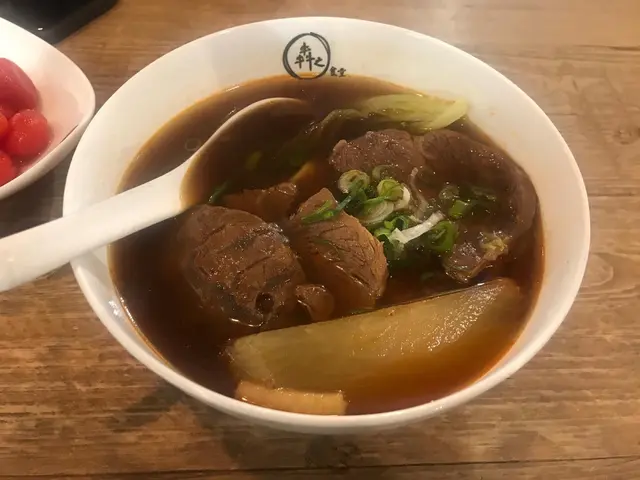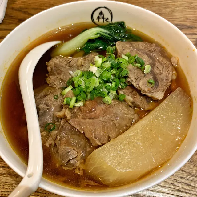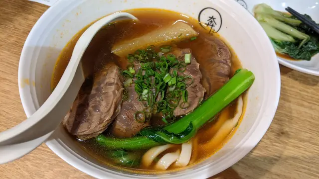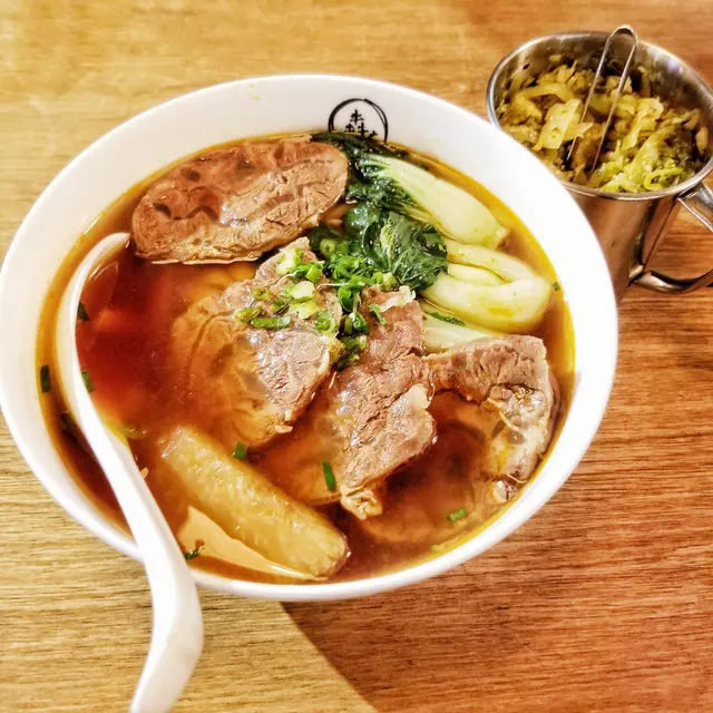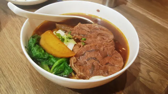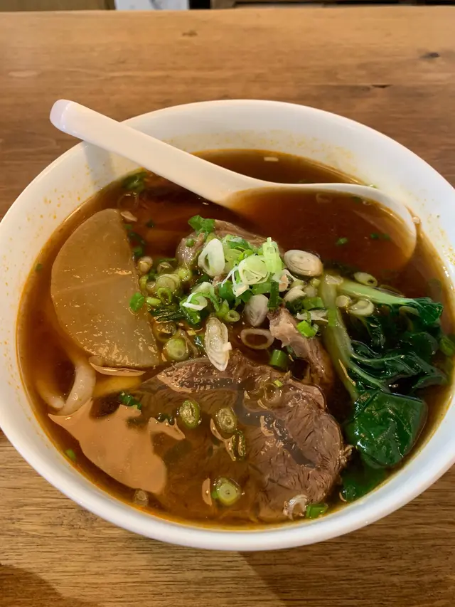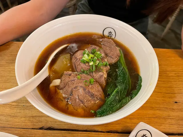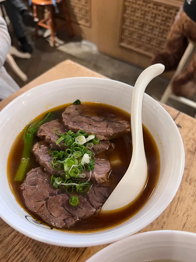 裝修充滿文青風,入到黎有去左台灣的感覺,坐得好舒服。星期日黎食都會有set,麵食都會有菜同野飲跟返。▶眷村紅燒牛肉麵◀唯一欣賞的係唔油膩,湯低一滴油都冇,但味道真係偏淡,有好少好少的辣味,其實都稱唔上係辣,係有味的湯底而已。有四塊頗大的牛展,好易咬,有牛味,但唔算好入味。▶傳統清燉牛肉麵◀呢碗不得了,湯底係好清,但好似福字米粉的湯底,唔知燉左乜野,一樣係四塊牛展,冇特別。麵條唔吸引,偏軟身,唔好咬。菜係白烚的,底有幾滴豉油,食菜的原味道。綠茶,正常。反而黑糖珍珠奶茶幾好,以跟餐質素黎講算唔錯,唔會死甜。…查看更多