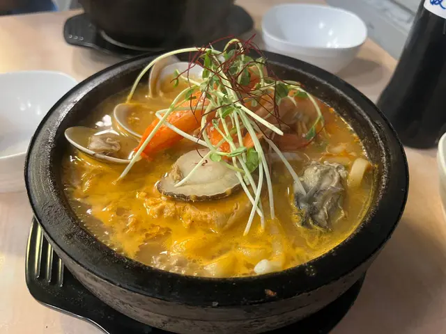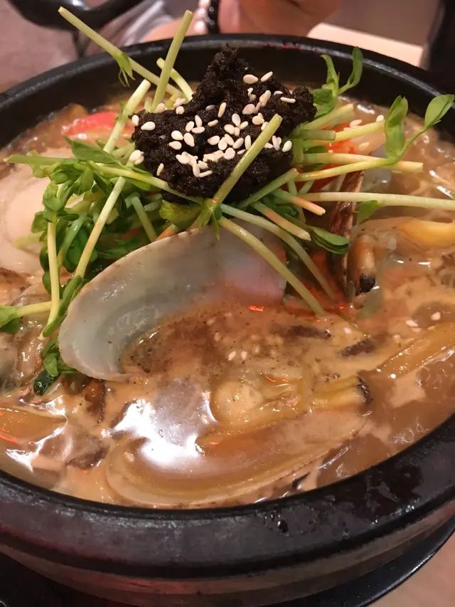 女人街野食都好多選擇,今次就俾石鍋飯吸引左店舖唔大,但餐枱嘅空間都算足夠店員態度親切熱心,頗有小店風味❤️🥘石鍋堂海鮮石燒手打烏冬 山地獄辛辣湯 $87用熱石鍋裝住嘅海鮮烏冬,一邊食一邊Keep住滾熱辣大大隻帆立貝,十分搶眼海鮮足料,包括有原隻鮮蝦、蜆、蟹柳、蠔山地獄辛辣湯,味道微辣,食落有泡菜風味可能因為連埋海鮮一齊煮,感覺有少少鮮味手打烏冬口感唔錯幾彈牙🥘汁燒帆立貝雞扒石鍋飯 $84🐔雞扒香煎,聞都燒雞香味,分量十足燒帆立貝,味道更加濃郁石鍋飯食落有鰹魚汁香味想更加濃味可以添加飯汁,淋落灼熱石鍋發出渣渣聲食到最後有石鍋底部飯焦,金黃香口,十分滿足👍🏻…查看更多