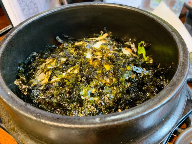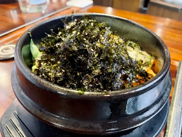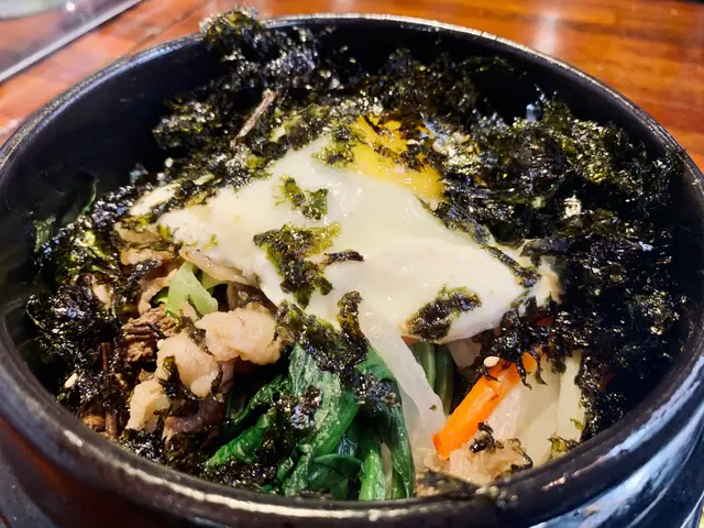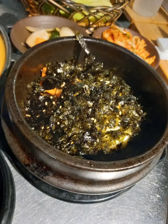 環境好似韓國個D韓燒餐廳,好地道。我地六個人,每碟小菜就有兩份一齊食,應該係任添嘅😍。我最鍾意嘅係蒜蓉白菜,唔熱嘅,蒜蓉味唔係太重👍🏻,添咗一碟😋。泡菜都幾辣,好爽口。仲有生魷魚🦑😵,豆角,同埋菜配辣醬。辣海鮮麵($80)都幾大碗,有蟹殼添但係冇乜蟹肉。有好多蜆同埋D豬肉片。唔會話好辣,幾飽肚。石鍋拌飯($75)隻煎蛋好大😮撈埋飯食好好味😋仲有飯焦🤤但係飯裡面係冇汁嘅(我個人鍾意)有一碟辣醬俾埋你,我覺得辣因為我唔係太食到辣😅。吞拿魚石鍋拴飯($75)吞拿魚份量都唔少,有D蛋黃醬同埋紫菜碎。石鍋烤牛肉($90)呢個係牛肉湯送一碗白飯。牛肉好薄好腍,份量都唔少。喜來烤肉($138)好細碟😅但係質素係好嘅,夠薄同埋腍。燒肉嘅話會送泡菜和芝士蛋,好好味😋。仲有送生菜用來包肉。價錢係偏貴,但係食物質素好。嗰碟烤牛肉實在太細啦😓服務員態度都OK,應該全部都係韓國人,但係講英文☺️。餐廳都幾大,可以同朋友一齊嚟食餐飯😊。…查看更多
