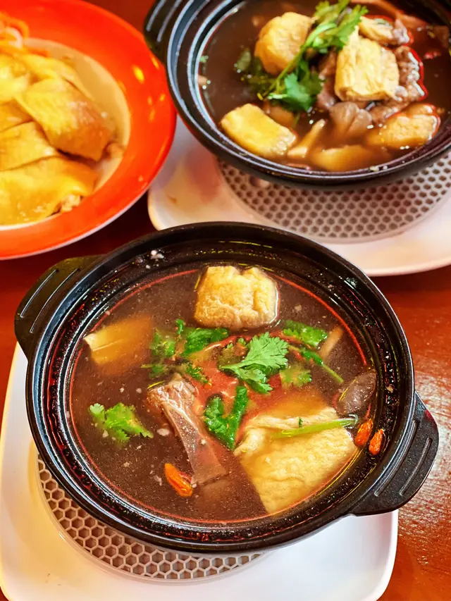 近著荃灣西站一帶有很多商場,其中的如心廣場更是食肆林立,這間新開的餐廳主打新加坡菜和馬來西亞菜,店內寬敞有超多座位,掛滿紅色和黃色的燈籠,也有模仿星馬街頭的招牌等等,充滿星馬特色。招牌去骨星馬雞飯 - $63份量頗多的去骨海南雞,肥美飽滿的雞肉好嫩滑多汁,爽滑的雞皮下有層透明的膠原蛋白,可蘸上黑豉油、酸辣醬或薑蓉,旁邊有醃紅白蘿蔔絲好爽口,配油飯,雞油香口而不油,或可轉白飯。醬汁牛肉滷蛋飯 - $65一片片肥瘦相間的肥牛很香嫩鮮滑,滿佈鹹香的醬油,滷蛋的蛋白跟蛋黃超入味。砂煲肉骨茶 - $68馬來西亞肉骨茶有著苦中帶甘、甘中有鹹的藥材香,混合肉香,溫潤而有餘韻,入口清甜清香;排骨炆得很軟腍,輕易便骨肉分離,還有豆卜、腐皮和杞子等等。砂煲藥膳牛肋肉 - $78比起肉骨茶,沒有那麼重的藥材味,啖啖肉的牛肋肉鮮美帶微微嚼勁,同樣有豆卜和腐皮,還有很多菇片。馬沙拉蟹肉海鮮炒飯 - $78即叫即炒的炒飯粒粒分明,滿佈均勻的蛋花,有著絲絲鮮甜的蟹肉,還有爽彈的魷魚等海鮮,更有三色椒等蔬菜更清新。亞參魚柳 - $65多塊雪白肉厚的魚柳好鮮嫩紮實,酸酸甜甜的亞參醬充滿風味,還有秋葵、茄子、蕃茄等等。街頭白咖啡 +$10馬來西亞的白咖啡富濃厚的奶香,降低咖啡的苦酸味,但保留咖啡香味,入口很爽滑。百香果烏龍茶 +$10醇厚回甘的烏龍茶茶味清新,有一粒粒百香果籽更有口感。水蜜桃紅茶 +$10帶香甜的水蜜桃果香,同時有紅茶的溫和。…查看更多