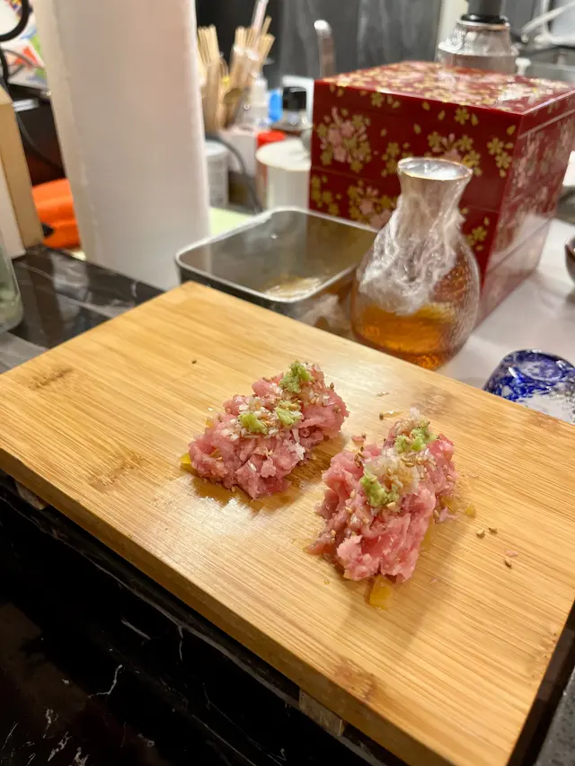 最近改去了美孚上班,但每天下午都想不到吃什麼好,好像沒什麼好吃的,但想不到就在公司附近就有這間廚師發辦的餐廳,感覺就像沙漠中發現了綠洲的感覺!Supreme Omakase(1400元) Deluxe Omakase (1280元)Supreme的跟 Deluxe 只差120元,所以Supreme的性價比真的高很多!吃的東西價值差距肯定超過120元了!以下會特別標示開兩款,沒標示的就是一樣。時令前菜三款三款分別是白梅貝,蟹膏豆腐和水雲,也是按食用的先後次序!白梅貝配味噌醬挺特別,吃起來鹹香中會帶點柚子的清香,配上爽滑的白梅貝非常搭,更突出貝的甜。蟹膏豆腐上面放了有蟹肉,吃起來鮮味十足,而且蟹膏非常香濃,入口即化!水雲也是第一次聽,其實是海髮菜,這裡吃起來是酸甜滑溜的,會有開胃的感覺刺身五款(Deluxe Omakase)刺身七款(Supreme Omakase)仙鳳趾 新鮮現開的,蠔非常飽滿,上面放了有青檸啫喱和紫蘇花,可以不加任何調味就可以吃了! 蠔入口像奶油般在口中化開,非常滑嫩,鮮甜味十足,沒有鐵鏽味,而裙邊位帶點嫩爽的口感也很好吃!魴鮄魚這個一共有4片,魚中面包了蔥,吃起來質感爽口但又有點綿,中間有淡淡的蔥香,而魚味較淡。日本白象拔蚌這個一共有4片,師傅直接提醒了味道是偏甜,更令人期待!吃起來是爽中帶點嫩的口感,味道非常甜,而且會在口腔裡停留一段時間的,配上酸汁來吃更突出甜!深海池魚這個跟之前吃過的有點不一樣,是爽滑口感,但魚味還是非常香濃的!泰式牡丹蝦 ( Supreme Omakase)上面係橙色的蝦膏,質感奶滑,味道非常濃香,蝦肉滑嫩鮮甜,一次吃到蝦的兩種滋味!煙燻鰹魚(Supreme Omakase)這個是即場煙燻的,來到的打卡屬性滿滿的,開蓋後的仙氣十足,魚挺大一片,而且挺厚的,吃起來肉感很強,味道醇厚,魚味很重,有點爽脆口感但肉質較綿滑,會帶點鰹魚獨有的酸。大拖羅加赤身這配搭挺特別的,一次吃到兩種不同口感和味道!大拖羅被師傅拿火槍燒到半熟,帶點焦香,配上魚味重的赤身,再包上紫菜,一入口就感覺到入口即熔的大拖羅,然後是嫩滑的魚味重的赤身,油香緊緊包裹著赤身!壽司五款蜜柑鯛壽司這魚肉非常厚,而且魚如其名,吃起來帶點蜜柑的清香,肉質嫩滑,而皮會帶點爽,整個感覺很特別!金木鯛壽司這個肉質更嫩滑,經過火炙後,吃起來帶點焦香和魚香!北寄貝壽司這個跟平常的半熟的北寄貝吃起來差得非常遠,這個吃起來非常嫩,中又帶點爽,味道甜美!小肌壽司這個吃起來帶有挺濃的蔥薑香,而且魚味非常濃帶獨特的香味,回味有點像鯖魚的感覺!海膽壽司 (Deluxe Omakase)這個簡單一點,但海膽也是非常新鮮的,海膽味道鮮甜濃香,入口即化! 富山白蝦海膽壽司(Supreme Omakase)這個份量真的挺大的,上面放了一堆海膽,接著又放了一層的富山白蝦,最後才是飯,最上面還放了金箔。一口吃起來,味道真的是非常鮮甜,質感滑嫩,入口即熔!吃起來非常驚喜,為什麼白蝦跟海膽一樣在口裡熔化的,那麼神奇!清酒北海道赤鮑魚 (Deluxe Omakase)這個是帶了一個壽司飯的,鮑魚吃起來爽滑,中間有點澀的感覺,因為是加了清酒去煮,挺特別的!碎蔥吞拿魚腩手卷 挺大卷的,內裡包滿了大量的碎蔥吞拿魚腩,中間還加了點黃瓜漬來增加爽脆的口感,吃起來魚香十足,帶點油香,紫菜香更突出魚味!廚師特選一品料理(Supreme Omakase)今天的是海鰻天婦羅,一共有4件,再加1件茄子天婦羅,炸得外脆裡嫩,完全不油膩,海鰻肉厚帶點油香,魚肉有點甜,本身就加了點鹽在上面,吃起來就是海鰻本來的香味,沾調料就更惹味!蟹肉茶壺蒸 這個也是挺大個的,上面有很多蟹肉,還有魚糕等食材,吃起來非常滑嫩,入口即化,帶點海鮮的味道!鯛魚濃湯Supreme Omakase店員介紹是用上幾十條魚來煮製的,喝起來真的非常鮮美,味道非常甜,但有濃濃魚香!是沒魚但像吃魚的感覺!舞洱白魚清湯 Deluxe Omakase這個看起來會簡單一點,味道清淡,但有魚塊,魚肉吃起來挺濃香!甜品我們選了芝士味和芝麻味,味道都非常香濃,而且不會太甜,奶滑奶滑的!…查看更多
