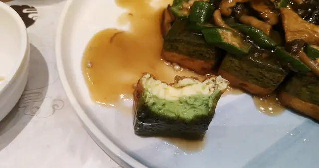 我同男友不嬲都中意食小菜同點心,今晚經過呢間餐廳見到呢度裝修幾靚價錢又合理當然要試下😁我哋叫咗個自家制秋葵野菌扒豆腐,啫啫芥蘭煲, 川式口水雞,白飯同楊枝甘露😋自家制秋葵野菌扒豆腐係一個全素菜式,豆腐一半原色一半綠色,賣相好靚好精緻👏豆腐外層炸得香脆裡面勁嫰滑!😋面頭鋪左雜菇同秋葵加啲醬汁,口感豐富得黎又唔會太乾~啫啫芥蘭煲一開蓋咋咋聲超級香!聽到隔離幾檯客都話好香😂😂😂 食落辣辣地帶啲蝦醬味,非常惹味🤤芥蘭爽脆亦都無芥蘭本身有既澀味👍口水雞唔算好辣,有微微花生醬香味,雞皮凍凍地食似啫喱既口感😁 雞肉非常嫩滑😋😋楊枝甘露幾重椰汁味,好足料👏啲芒果都好甜👍限聚令後一定要約埋班朋友黎試其他菜式,啲避風塘都好吸引😍 多啲人可以試多啲款😎😎…查看更多