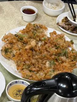 二訪這間高質實惠客家菜今次和家人過來慶祝中秋節人均不到 $200 已經吃到了豐富的菜式🦪 炸蠔餅這份餐點是我過來的原因坊間的蠔餅通常也炸得黃黃的,就是由非常舊,而且炸粉比主角多,也非常熱氣~但這裏的蠔餅不但賣相出眾,有著12吋 pizza 的size ,而且還是真材實料,每粒蠔仔都有大約拇指那麼大,炸粉皮薄新鮮,惹味脆口,全家人也讚不絕口!🐣客家鹽焗雞(半隻)雞肉新鮮嫩滑,大大隻,鹹鹹香香🐔藥膳黃酒煮雞湯口感實在,酒味濃郁的雞湯,雞肉煲到很腍很好吃🦆秘製三杯鴨第一次品嚐這種款式的調味,酸酸甜甜,鴨肉新鮮,開胃菜式🤍椒鹽豆腐經典的小炒,豆腐嫩而不散,皮薄香口!🥒蒸黃瓜這是非常驚喜的一款蔬,蒜蓉沾滿了粉絲及瓜,健康美味…查看更多