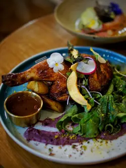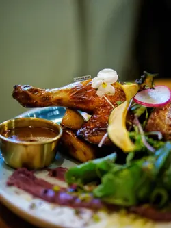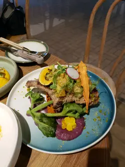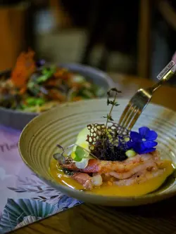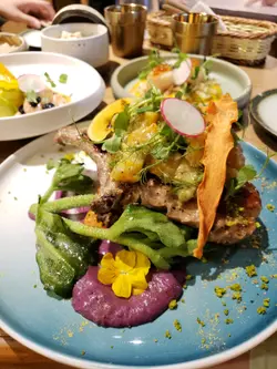 香煎慢煮西班牙伊比利亞黑豚鞍配蜜桃牛油果莎莎