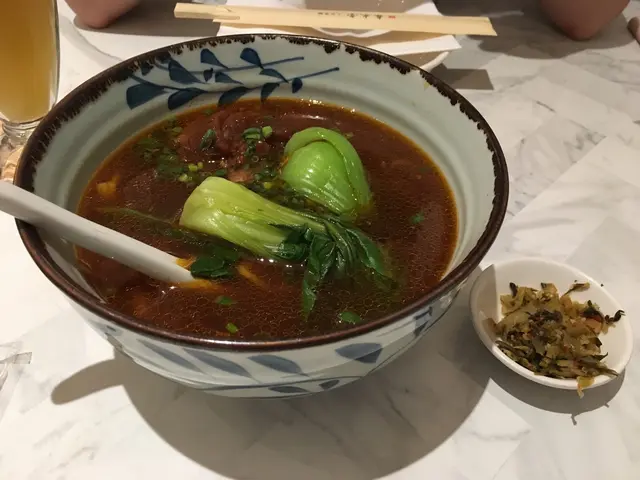 每次行經門口都見人龍排隊之過江龍(春水堂) 今日專程🚗同太太到這店.📌春水堂人文茶館 (創紀之城五期(apm)) (觀塘)觀塘觀塘道418號創紀之城五期apm一樓L1-1號舖.營業時間早上11時30分至晚上22時正到達.但我哋喺11時到達.距離開舖時間還有30分鐘已經見到有幾個人排隊.我哋都行過去一起排隊。到咗啦.我哋係第三枱顧客.可以係還在安排顧客入座時段.來一張沒有顧客的環境下打卡.場內環境都好靚.令我有一點優雅舒服感覺.呢度都係用QR落單.有唔明白之處.侍應生會用熱誠態度過嚟協助.👍👍👍點餐如下: 1. 紅燒牛肉麵(半筋半肉)X1 $88元 2. 黃金香酥雞 X1 $52元 3. 金沙芋泥丸 X1 $49元紅燒牛肉麵(半筋半肉)有齊兩種口味.湯底夠濃.唔會好鹹.😋份量比較少啲.價錢唔成正比!😔黃金鹽酥雞.粉漿超薄.外皮香脆.入口肉汁鮮嫩.😋😋😋金沙芋泥丸.外皮芋泥炸得香脆.餡料是流沙鹹蛋黃.唔會好杰.又唔會好似啲水咁流出嚟.有啲似熔岩👍😋😋😋…查看更多
