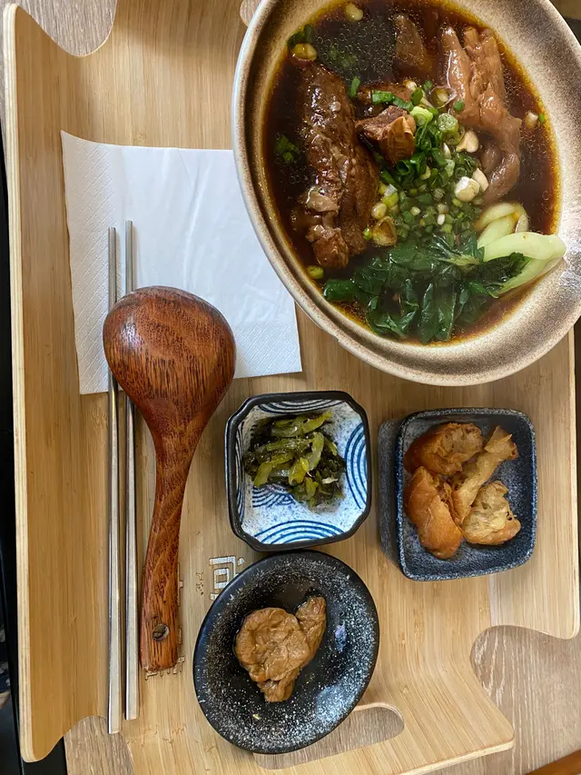 灣仔人龍台灣菜🇹🇼[尚青商號]喺灣仔同金鐘交界既一條巷仔竟然有一間咁高質嘅台灣菜👍🏼👍🏼門口有兩個大郵筒📮吸引住🤩餐廳一入到去門口好似懷舊嘅士多店 🥫💈入到餐廳即刻好有文青既🌟紅燒牛肉麵🐂🍜($74)湯底方面牛骨味重 帶有少少甜牛腩唔會太肥 好入味 手工寬麵爽口而且有咬口唔會煮得太淋啱啱好🤤湯麵會配油條、酸菜同涼拌木耳😚記得加埋個酸菜落去成個湯即刻昇華🔝🤩🌟麻辣鴨血煲 🌶🦆配冬粉($82)相對來講佢哋嘅湯底比較辣啲 入邊有啲花椒 少少麻 食唔到辣嘅人要小心啲啦🥵🔥鴨血滑口又入味 而且唔會有啲奇怪味😚個煲入邊仲有貢丸🐷同埋蜂巢豆腐豆腐索曬湯底嘅精華 好入味🤤🌟椒鹽炸拼盤(蒜香雞翼 甜不辣 椒鹽四季豆 椒鹽百葉豆腐)($54) 成份野都好香蒜味🧄出到嚟唔會油淋淋🛢個炸粉唔會太厚👍🏼 抵讚雞翼好大隻🤤 椒鹽份量適中甜不辣炸得啱唔啱好🤤入面仲好煙煙韌韌🥳炸豆腐外脆入面仲好滑🥳Ps. 因為餐廳都好旺場所以用餐時間得一個鐘🏃🏼♂️🏃🏻♀️約朋友仔食依間野就記得留意番喇⏳…查看更多