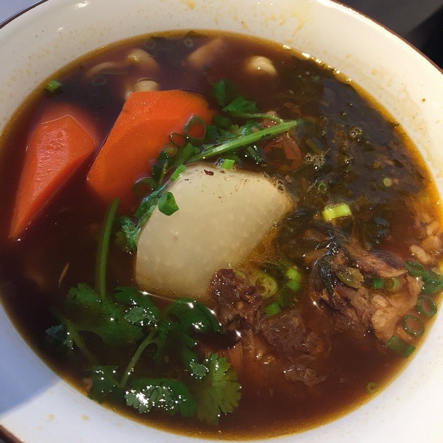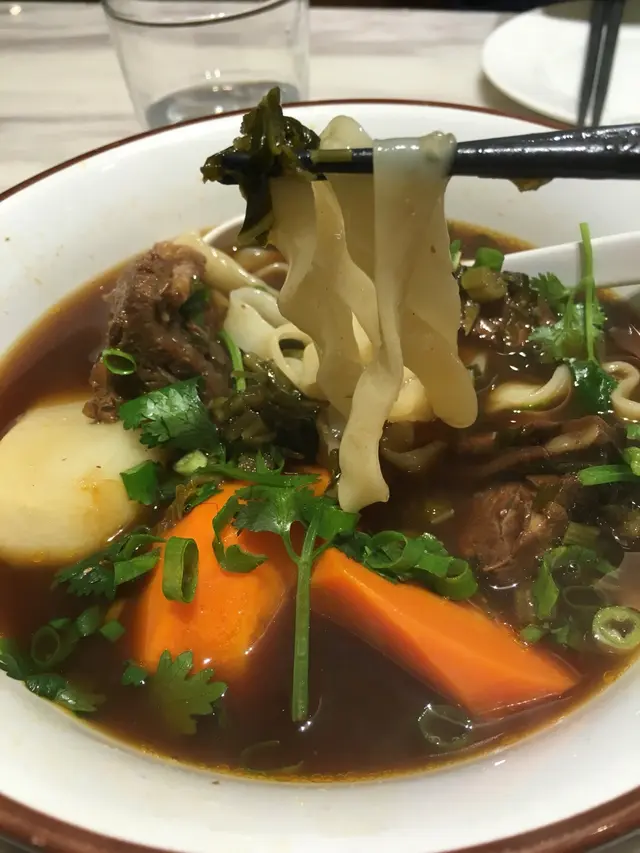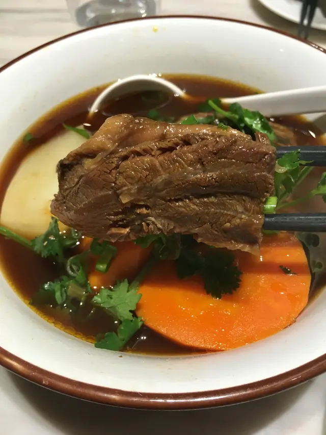 雖然長大後各自都為工作或生活而忙碌,但好朋友是要見的,更何況是十多年的好姐妹,有什麼特別重要的事情要分享總要見一見面傾談一番才暢快! 今天爽快地約了在這裡碰頭,來個簡單的晚餐,卻想不到有驚喜!其實我也不是第一次來茶木吃,但茶木的食物款式確實頗多,每次都可以試新的菜式,這次也不例如。我們三人最後選了三款食物,其中一個是跟餐的,有飲品和甜品。首先來到的是香草明蝦鮮菜沙拉($69)。沙律是必叫的,因是我的主菜xp。 蝦肉彈牙,蔬菜新鮮爽脆,淋上胡麻醬,簡單卻好吃健康。然後是紅燒牛肉麵($75),絕對是今晚的驚喜! 牛肉味濃,肉質軟腍非常,湯頭濃郁,紅蘿蔔吸收了濃湯精華十分入味,用上粗身的麵條,口感煙韌有咬勁,絕對能滿足澱粉控! 個人推介這款紅燒牛肉麵!最後是鳳梨鮮果甜酸肉($75)配飯,以半個菠蘿上碟。除了菠蘿外,還有火龍果,士多啤梨,龍眼,味道豐富;咕嚕肉炸得脆口,肉有咬口,加上以鮮果調配的醬汁酸甜惹味,配飯吃真的不錯!跟餐的甜品,最後選了香橙百香果慕絲蛋糕,因為似是較為特別的款式。蛋糕賣相特別,有支針筒插於蛋糕上,原來針筒裡頭是橙醬,唧於蛋糕內再切開,會有流心效果。外層像啫喱質感,內裡慕絲幼滑,底層是海綿蛋糕,口感豐富,味道酸甜香口,是較輕盈的甜點之選。晚餐滿意之餘,亦與好友渡過愉快的一晚。…查看更多