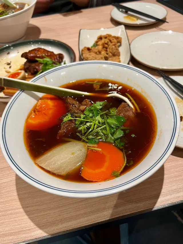 好耐冇食台灣菜,經過德福,見到座位都坐得幾舒服,於是就入咗去。餐牌有好多選擇,我地二個人,叫咗兩款小食同兩碗麵。金黃鹽酥雞$48鹽酥雞好香口,如果配酒就一流,可惜要揸車,唔飲得。台式滷味拼盤$86台式拼盤樣樣都有啲,包括滷水雞翼、牛腱、豬腩、滷水蛋,不過我覺得味道偏鹹。紅燒牛肉麵$88紅燒牛肉好淋,好入味,麵條好有𡁻頭,呢款好食。不過我個人覺得個湯底都偏鹹。紅䓤醬燒豬軟骨麵$82呢款都好食,豬軟骨同樣好淋好入味。原本叫咗兩杯果茶,可惜等得太耐,最後取消了,唯有下次再飲😅…查看更多