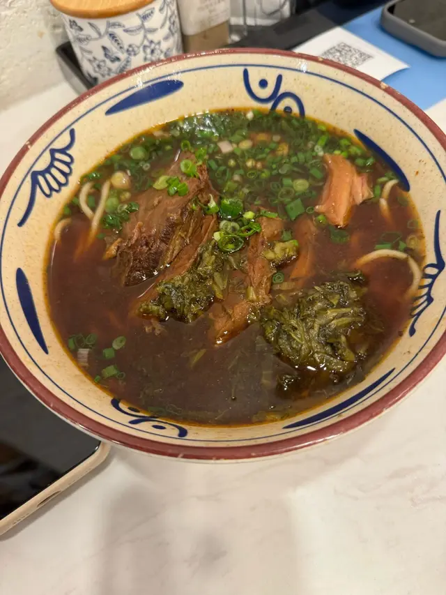 ⭐️⭐️⭐️⭐️ 75/100 這家店主打台式料理,網上評價頗高,特別是他們的招牌紅燒牛肉麵和酥炸排骨便當,聽說很受歡迎,於是特意來試試。整體來說,兩道菜的味道不錯,帶有濃濃的台式風味,但與網友吹捧的「高質素」相比,還是有些落差,感覺略為名過其實。先說招牌紅燒牛肉麵,湯底呈深紅色,散發濃郁的牛肉香氣,湯頭以紅燒方式燉煮,帶有中藥和醬油的香味,入口濃郁卻不油膩,喝起來還算順口。牛肉切得厚實,份量足夠,肉質軟嫩,燉得入味,帶點醬香,咬下去很有滿足感。不過,麵條表現稍為失望,雖然軟硬適中,但吸附湯汁的能力一般,吃到後面湯頭的味道沒能完全融入麵條,影響了整體口感。湯面上撒了些蔥花和青菜,雖然新鮮,但份量偏少,湯麵的層次感稍顯單薄,與期待中的「招牌水準」有點距離。另一道酥炸排骨便當則包含酥炸排骨、白飯配滷肉醬和三款小菜。排骨炸得金黃酥脆,外皮香脆,肉質嫩中帶點嚼勁,調味偏鹹香,帶有台式炸物的經典風味,但油膩感稍重,吃到後面略為膩口,建議可以搭配酸菜或醬料解膩。白飯上的滷肉醬是亮點,醬汁濃郁微甜,帶有蔥香,與軟糯的白飯很搭,相當下飯。小菜包括滷豆腐、醃紅薑和黃蘿蔔,紅薑酸甜開胃,黃蘿蔔清爽解膩,但滷豆腐偏軟,味道普通,沒有太多驚喜。整體便當份量足夠,但小菜的用心程度稍顯不足,與網上說的「精緻台式便當」有點落差。環境方面,餐廳以木質裝潢為主,牆上掛著菜單海報,氛圍簡單溫馨。不過座位安排有點擠迫,特別是用餐高峰期,桌子之間的距離略窄,稍微影響了舒適度,但整體還算可以接受,不至於成為主要扣分原因。服務態度中規中矩,店員上菜很快,但互動不多,略為冷淡。價格不算貴,兩道菜加起來也算合理,但以這樣的表現來說,還是覺得有點名不符實。總體而言,這家店的台式料理味道尚可,適合想吃簡單台式餐點的朋友,但與網上高評價相比,質素未達預期,細節上可以再用心。給75分,表現中規中矩,下次可能會試試其他菜式,看看有沒有驚喜。…查看更多