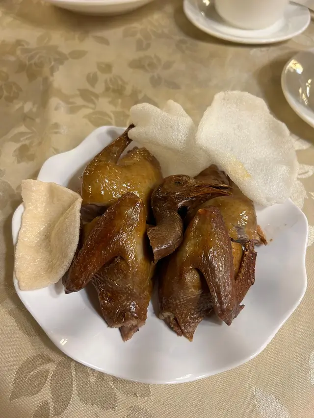 細細個父母就鍾意帶我黎龍華飲茶睇孔雀,今日就帶趁另一半生日一齊過黎回憶下細個嘅味道。今日食依然保持到水準,裝修都冇大執,真係充滿童年回憶!紅燒頂鴿 (⭐️⭐️⭐️⭐️⭐️)乳鴿燒得好嫩,皮薄肉厚,雖然價錢比其他店家稍微貴,但物有所值,乳鴿大大隻,每一啖都好多汁,配埋新鮮炸起蝦片陳年的擺盤方式真係回味無窮。黃金花膠海皇羹 (⭐️⭐️⭐️⭐️⭐️)湯羹真材實料,顏色相當吸引,一分錢一分貨,金黃色由新鮮南瓜打磨而成,裡面放了不少的花膠、元貝等貴價食材,好暖胃補身。姬松茸燉鴿湯 (⭐️⭐️⭐️⭐️⭐️)姬松茸係名貴的食用菌,有不少藥用價值,煲出來帶點點杏仁香味,加上杞子和鴿肉更顯鮮甜,鴿肉份量十分多,有大半隻,個湯熱辣辣好暖胃,鹹度適中,啱晒要補身的另一半。香煎釀豆腐 (⭐️⭐️⭐️⭐️⭐️)豆腐大大舊好滑,外層炸粉薄而脆,面頭魚肉鮮甜不鹹,配合娃娃菜做底既能吸收濃郁醬汁,又帶點清新口感,送飯一流。懷舊豉油皇炒麵 (⭐️⭐️⭐️⭐️⭐️)炒麵好乾身,唔會有多餘嘅油分,每一條麵都長身幼細,大大碟食到4-5碗,餡料亦夠多,大蒜、韭菜、銀芽脆口新鮮,豉油味濃香。~~~~~~~ 龍華酒店 沙田下禾輋22號地舖 👍出色味道👍服務周到👍環境舒適…查看更多