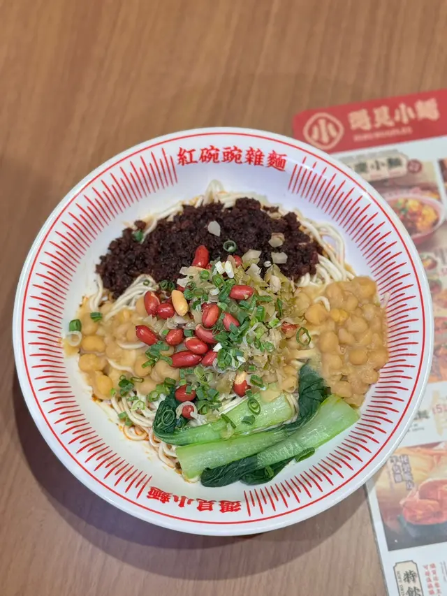 最近去旺角 MOKO 經過內地人氣遇見小麵,這間餐廳朋友也曾經吃過感覺很不錯。這天我們來到,價錢便宜,那就立即入去吃個套餐先。入到餐廳,地方闊落,裝修風格好有特色。餐廳主打這四大招牌系列 : 紅碗碗雜麵、金碗酸辣粉、小鍋冒菜及抄手家族,有辣有不辣,不錯吧。紅碗豌雜麵 $42餐廳招牌菜,必食推介!這碗辣度可選微辣、重慶味、霸道辣或魔鬼辣 ; 吃不到太辣的我,選了微辣 ; 根據指示,把麵條和配料拌勻30秒,肉味香濃,豌豆脆脆,蔬菜翠綠鮮爽,麵條滑身,每一口充滿麻辣鮮香,感受到地道重慶風味美食。脆皮半只雞三件套 $36這個三件套包括有秘制脆皮半只雞+蔥酥骨湯抄手(小份) + 飲品,真的很划算。半只雞份量都不少,皮脆肉嫩,內裡有肉汁,不會乾身,抄手肉餡鮮嫩,熱騰騰的湯底,清甜有肉骨香味,套餐飲品可選擇凍檸檬茶,免費轉配茉莉凍凍酸梅湯及滋潤八寶茶,另+$1 轉琥珀冰粉、+$4 轉白玉厚椰乳。白玉厚椰乳,椰子味香濃,口感順滑潤喉。超值三件套 F3 套餐 $32這套都是下午茶餐,蔥油拌麵+雞排+飮品,亦都很超值。蔥油拌麵可選辣或者免辣,朋友怕辣就選免辣,拌麵份量好足,一大碗滿滿的,把蔥油和醬汁拌勻一起吃,調味恰到好處,香氣撲鼻,雞排外脆內嫩,裡面不乾身,酥脆可口,很美味。安格斯牛肉串 (3串) $19牛肉一口一粒,吃起來很方便,肥瘦均有,嫩滑有肉汁,配搭微辣的調味粉,特別惹味。爆漿豆腐串 (2串) $17覺得這款非常好吃,外層香脆,帶微微辣味,一咬落去真的有爆漿感,豆腐中間好嫩滑,豆味濃郁。白玉厚椰乳 (+$4)套餐飲品轉配白玉厚椰乳,椰子味香濃,口感順滑潤喉。茉莉凍凍酸梅湯天氣炎熱,點了杯茉莉凍凍酸梅湯,口感清新,酸酸地,好開胃。…查看更多