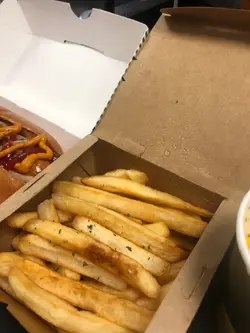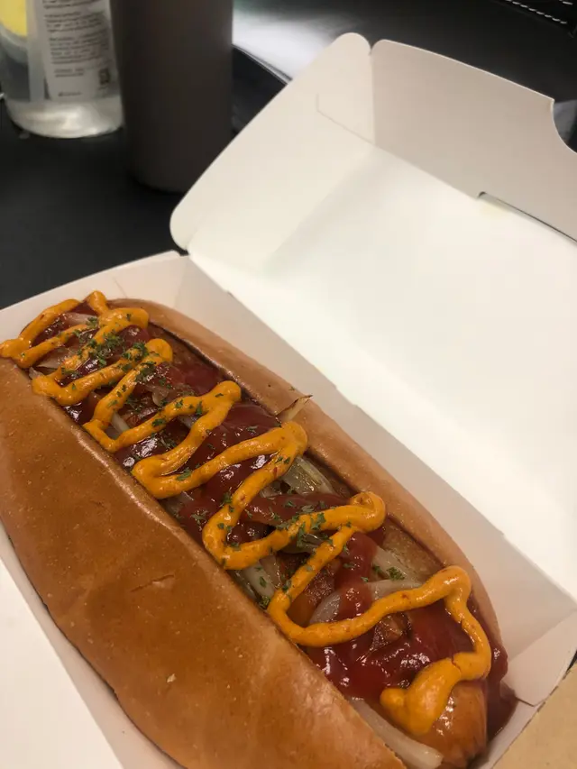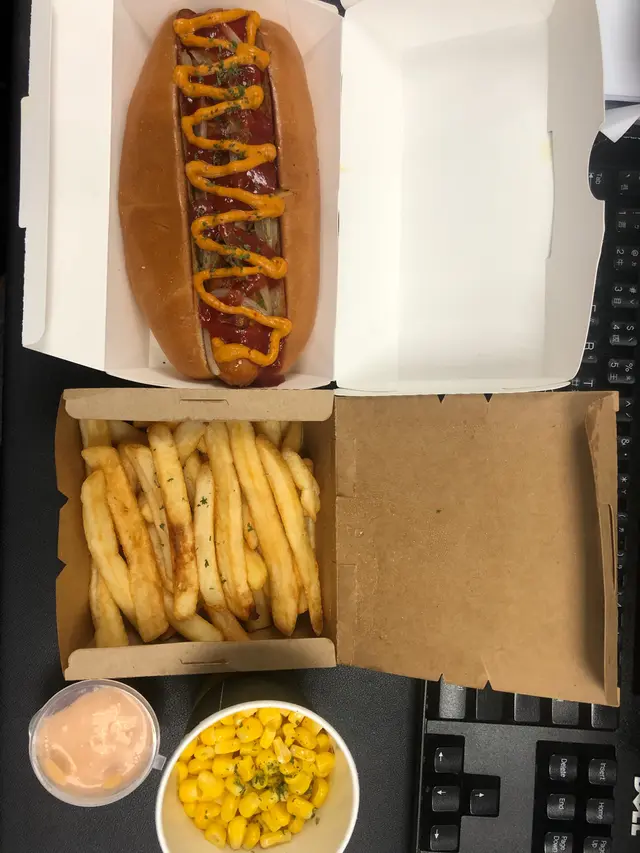 係疫情底下,禁左堂食,唯有繼續我外賣自取之路,今日黎到呢間遠近馳名既齊柏林熱狗🌭️叫左個紐約辣味腸熱狗$38,+$12 就可以選擇多兩款小食,我就揀咗粗薯條同粟米粒粒👍🏻👍🏻等左大約5-10分鐘就開得餐啦!!先講熱狗,大大份,好有係外國食到既熱狗size,腸皮好脆,肉汁多,高汁👍🏻👍🏻D醬又落得好多,好食👍🏻👍🏻先到小食,粟米🌽粒夠大杯,略嫌牛油味唔夠多,但勝在夠健康💪🏻💪🏻另外呢個粗薯條🍟就大大大力推薦,薯條夠粗,薯仔🥔夠多,啖啖口感,正而最高質係個醬,上面千島醬,下面茄汁,覺得自己上左天堂咁😂😂整體來講高質👍🏻👍🏻,食熱狗不二之選👍🏻👍🏻…查看更多