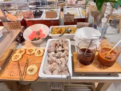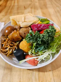 佐敦及尖沙咀區一帶有很多素菜館,競爭一向劇烈,中式、西式或自助餐,任君選擇。餐廳非常受歡迎,本是空空的食堂,不消一會,便坐滿食客。午餐的安排十分自助,入座之後,一切操作包括回收餐具均由客人自家處理,當然店家在放置剩食及餐具回收桶的安排也是合理和方便的。 午巿由11:30至14:30時,用餐時間90分鐘,以自助餐而言,$98位十分實惠。餐廳提供的素食種類很多,有涼菜、沙律、小食、小炒、燜煮菜式、湯羹和不同的飲料。素菜多以小盤盛載,有些受歡迎的菜式,很快便空盤,然而店家補充的速度也算合理。素食款式眾多,不難找到一些適合自己的素食。…查看更多