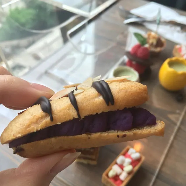 感謝地鐵之發明另一個懶透廚娘在假日都可以四圍去且方便, 端午公假沒兒沒女兩袖清風撥個what apps竟然得多年老友捨得棄下老豆跟我歎茶,「朋友。我檔你一世朋友」。。。中環給我感覺假日是「姐姐天下」,不過今個假日卻見港人數數、和平日繁忙下午也別無多樣,換上的只可能是輕鬆便服,沿地鐵「畢打街」出口、原為貼近目的地,好一個5分鐘的腳骨力,一個少少斜路仔便到對餐廳其餘分店早已拜訪,中環這一舖還是第一次、裝潢跟分店同一風格撞色配搭,大玩創味,被分派到大窗旁感覺頓然加多二錢開心、食物選擇早已為交友網內洗腦之afternoon tea。。。兩時入席等候大約十五分鐘精緻「e層架」直入廣告架終於上場,afternoon歷史源遠流長不作拋書包,到了這一代真係大大變化、當然萬變也離不開食物先來是兩件高高厚厚傳統英式鬆餅,體積雖厚但個子不大、「的的色色」沒有撐飽你個胃本事,內裏餡有葡萄乾,牛油香入口滿注、個人就喜歡塗上果醬貪多一份甜美置頂之君度忌廉朱古力餅完完全全俘虜了我的眼晴、吃在口中紅桑子鮮甜味美,不過朱古力餅可能放涼了、濕度除着生果及小忌廉而上升,稔了猶如薄底Brownie般,這點廚師可要留意哦!引入大熱紫薯為題,注入在長長泡芙身上、濃濃紫薯香氣飄飄送進嘴巴,一人一件不用爭喜愛原至心底之紫薯控,食物文化之中西交流仙人掌忌廉撻何解會解讀唯仙人掌?打做成之內餡又會否是蘆薈版之變奏?摸不著頭腦下侍應也模模糊糊之解識, 嬌艷粒紅下味味酸酸甜甜、曲奇皮下意外的很脆身,沒有先前紅苺朱古力餅般浸稔,感覺趣味性與真實味道同樣取得人心食物架上由低食起,還是從高而下、懶理傳統定律,兩位女士打亂了所謂規則、只要開心一切從心出發 ,三文魚脆多士烘得脆口多士加上煙三文,貼心加片檸檬、不論是視覺,還是真正味覺需要廚師也細心做到,點點檸檬汁細細提味雞尾酒蝦沙律大而爽身,附上身旁帶點香草味道、酸酸味道來自杯中蕃茄醬,醒胃喚醒味蕾野菌酥盒一個小小千層酥上放上數款不同雜菌片,面層用上點點芝士而製焗、入口勁為鬆化,酥皮薄度脆度都合符廚娘心意用上可愛迷你杯子盛載鮮果蛋沙律,將碎蛋混同上白汁沙律面層再而放生果、兩者味道鮮明特出,但整體來說就感覺平平、較為大路有得紫薯哪又會沒有抹茶之道理? 迷你小鍋身上之綠茶布丁,綠茶味道恰好不會過濃而變甘苦,糖份上比例也沒有被掩飾得無影無縱、感覺不俗愛拍照愛分享絕對是現今社交網上禮儀,我和靚太又怎會不懂?看來這個飲食文化還會繼續流行靚太要的蜜桃柚子茉莉茶,三者中兩款、只見柚子在濃濃蜜桃味包圍下,疑同於零, 茉莉茶香也不令人失望順喉甜美的焦糖latte,永遠都是咁得人歡心、奶泡打得細膩幼滑,輕呷一口少少焦糖香灌注入喉唔多甜、品性溫文, 一口接一口很快給我喝光Afternoon tea早已不再是上流人士闊太白領的下午茶身份像徵,全程二百多元的一個下午 ,進軍中環歎著小件茶餅、小小阿太也可做到,水準也不為錯,論價錢、論地點,論食物三者也通合格。…查看更多