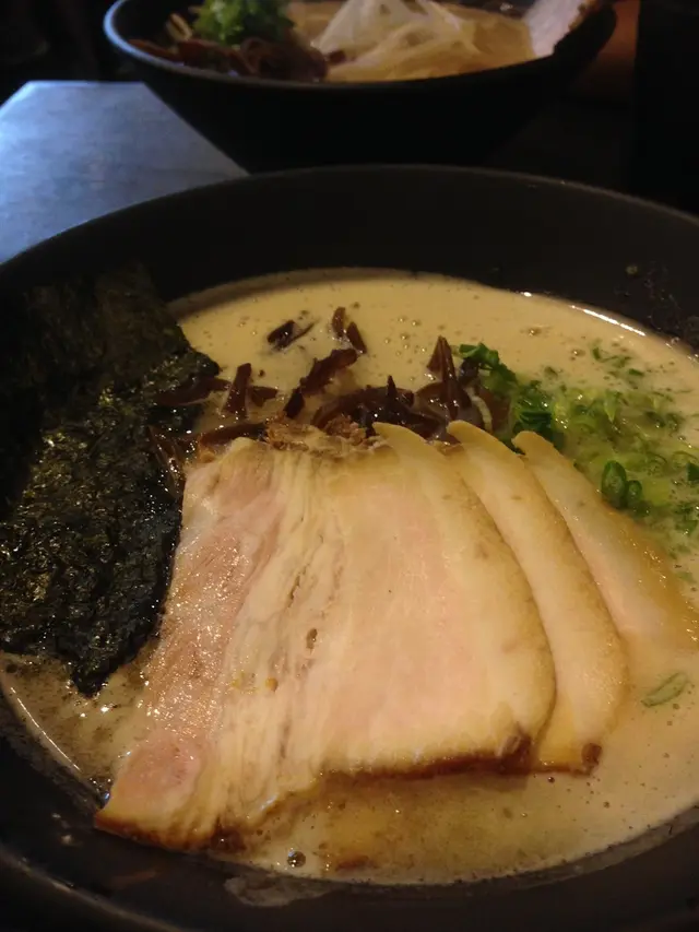 突然心血來潮想食拉麵,到銅鑼灣食肆林立的食街登龍街覓食,卻被這家店門前的電視採訪吸引了。就看看福岡的拉麵多利害。菜單很簡單的一張,主要拉麵有五種,加上限定拉麵,當天的是黑松露拉麵。我和朋友都想試試它的真功夫,不約而同地點了經典叉燒拉麵。拉麵配上豬骨濃湯,附有紫菜,黑木耳和叉燒4片。他們店還有推廣活動,只要在Facebook上分享他們的貼子就會免費送上溏心蛋一隻!我當然不會錯過啦!好!先來一口湯底。嗯~好香濃,帶有天然豬骨油香但不會太油膩,而且還有一點甜味,喝下去好順滑舒服,令人想一喝再喝。麵質方面我選了軟麵,軟硬度剛剛好,是我喜歡的口感,而且粗幼度適中,連麵帶湯非常美味。我和朋友都只顧各自專心進食,好像是一直食下去就對了。叉燒方面每片都切得薄薄的,結實的肉質裡充滿著淡淡豚肉香味,味道洽到好處。而我覺得很幸運地有點溏心蛋(抱歉忘了近拍)。應該是我目前吃過最美味的溏心蛋。茶啡色的蛋白咬下去十分柔軟滑溜,輕輕咬開一角後很快看見裡面的溏心蛋黃慢慢流出來!橙黃色的蛋黃像是會流動的蜂蜜,輕輕一吸把它送入口,感覺多麼滿足!又香甜又美味!外層的蛋白有滷過的淡淡醬油味道。簡直是人間美味!噢,對了。吃到中段因為好奇打開了放置在一旁的佐料組合。發現其中一個器皿放有疑似是雪菜或酸菜的味菜。好奇之下小放了兩匙到湯內,唷!相當不錯!原來是有點辛辣味的酸菜。令整件事情不一樣了!刺激又惹味!果然有發現。我最後想表達,因為今天是公眾假期而沒有下午茶的悲哀。。逢星期一至五下午三點至六點,食經典拉麵可以免費送一份小食和汽水!我兩樣都很想要!但為什麼偏偏今天是紅日呀!(掩臉裝哭)…查看更多