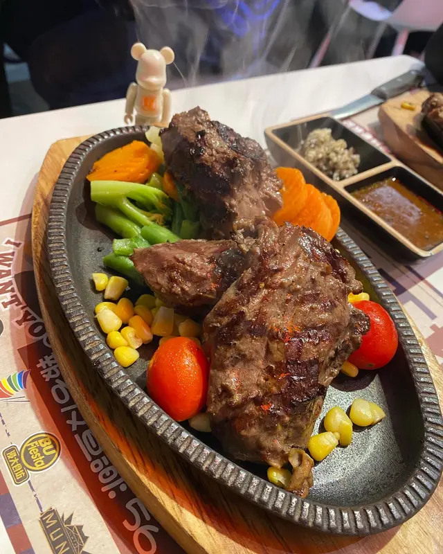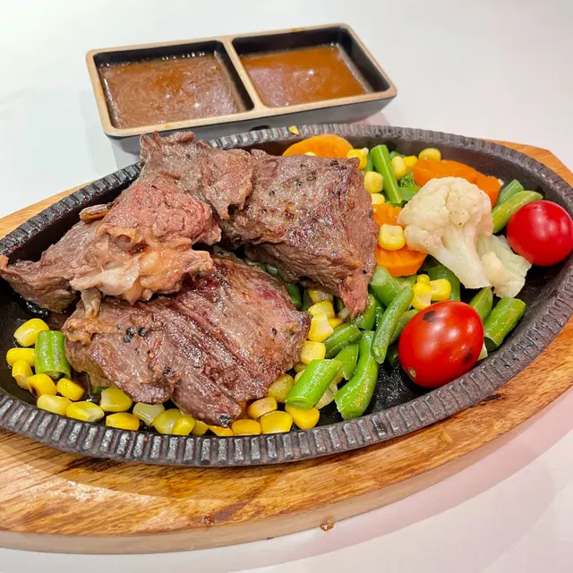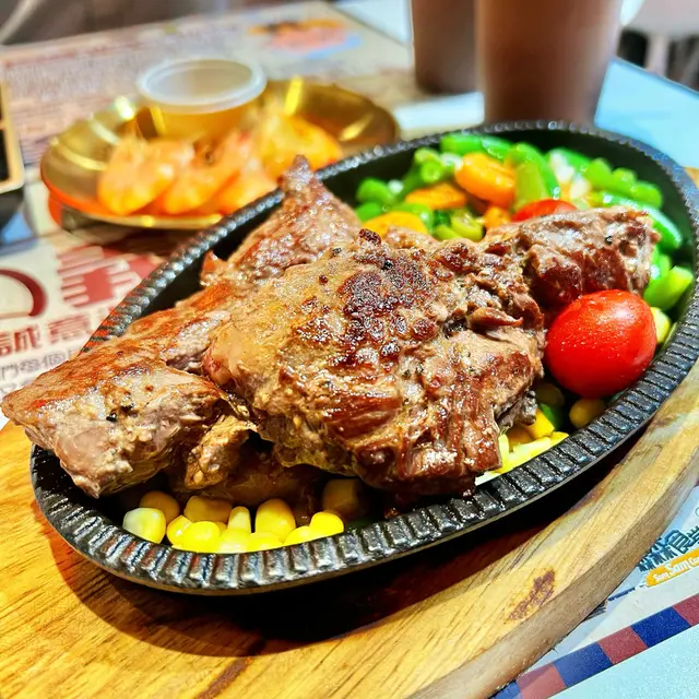 OT完近近地同同事喺公司附近搵野食,見到呢間餐廳comment唔錯所以去試下😝。Menu選擇頗多,主要有鐵板餐、burger同熱狗,跟set有齊飯/沙律、小食同野飲,大胃王表示好滿足😎。🔅澳洲草飼肉眼 ($98)塊肉眼扒好大塊🤤,叫左五成熟,肉質夠淋又夠嫩,點埋汁perfect😎。另外自助區醬汁係自己拎,想要咩汁都得👍🏻。🔅美國安格斯封門柳 ($92)呢個都係叫左五成熟,燒得啱啱好,好嫩好濃牛味😋 。呢個價錢有三大舊安格斯封門柳好抵食🥺。🔅香脆炸薯格 ($13)薯格炸得熱辣辣好脆,份量都唔少🥺,散叫都係$13蚊幾抵。🔅薯條 ($13)🔅芝麻醬雜菜沙律🔅是日煮藍青口🔅香草意粉🔅紫菜飯🔅熱朱古力🔅凍檸茶 (+$5)💬鐵板扒餐選擇夠晒多,連飯/意粉都有幾款揀🤤。加上小食高質,上菜又快,整體幾滿意😚。…查看更多