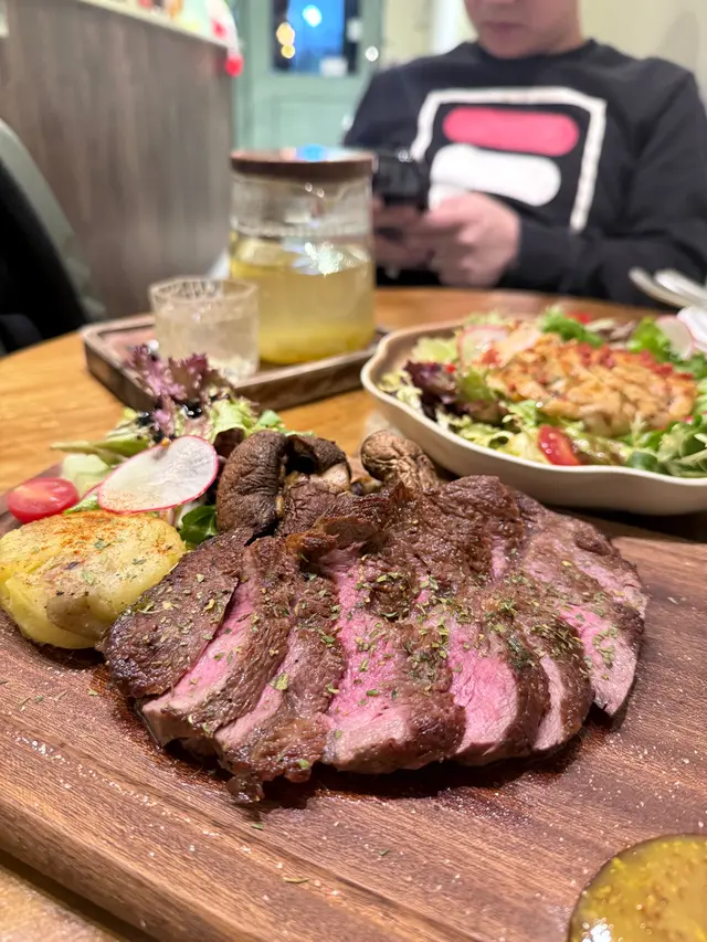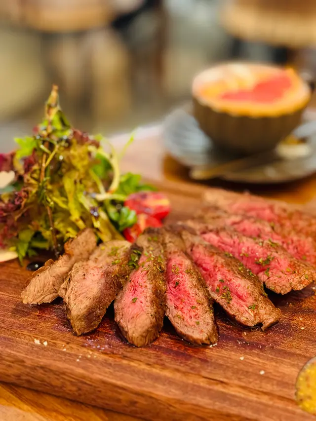 呢間餐廳店內燈光柔和,給人一種温暖舒適嘅感覺💝湖水綠色店面,以綠色植物點綴🪴👭🏻Dinner Set ($468 for 2)💗是日精選餐湯胡蘿蔔湯味道較淡,無乜甜味🥕💗慢煮雞胸柚子汁沙律慢煮雞胸肉擺成玫瑰花,肉質非常嫩🐔再配搭新鮮清爽嘅沙律菜,以柚子醋調味,微酸開胃🥗💗海膽味噌蟹肉意大利麵 (+$38)意大利麵口感Al Dente,每條意粉都掛滿濃厚嘅海膽味噌忌廉汁🍝配料有蟹肉、蟹籽、菇菌、紫菜,仲有一小舊海膽,入口超重奶香又有蟹肉鮮味🦀💗美國安格斯牛板鍵 (+$38)牛板鍵煎到啱啱好五成熟,呈粉嫩色澤,入口軟嫩Juicy,肉味濃厚🥩蘸上蜜糖芥末醬提升風味,伴碟仲有自家製薯蓉、烤大啡菇、沙律菜🥙💗Apple Crumble Apple Crumble切餅鬆軟帶肉桂香,中間有少少蘋果粒同合桃,表面仲有牛油脆脆🍎💗TPi冷泡青提烏龍(+$12)將青提汁同烏龍茶Mix埋,清新嘅茶味帶點清甜嘅果味🍇💗Strawberry Yakult (+$12)特飲呈夢幻漸變粉色,內有士多啤梨果肉,飲落清新帶乳酸味🍓…查看更多
