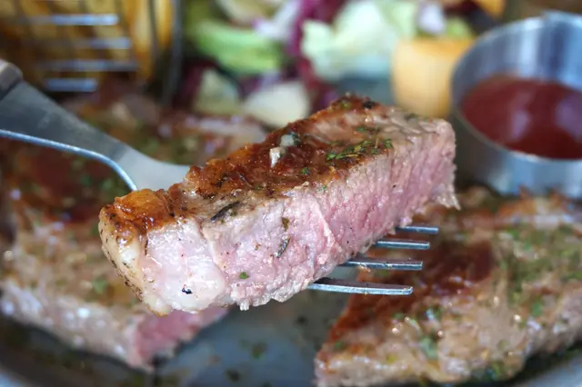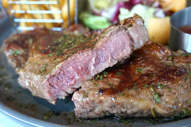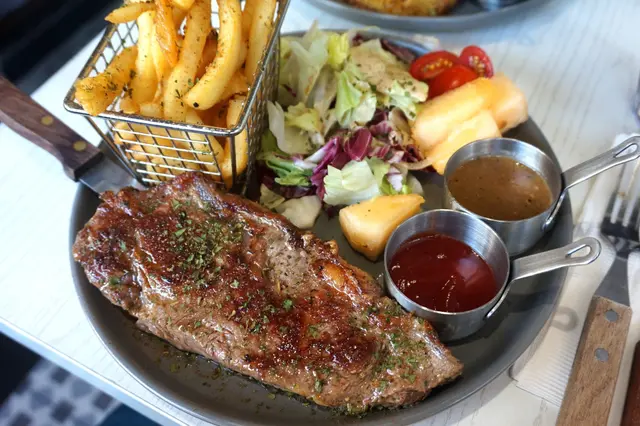 老友喺食肉獸,首選就喺西冷扒,賣相同我嘅豬扒一樣咁可觀,配上大量薯菜、水果。落刀切少少出嚟影相,已感受到肉質好嫩滑,老友要上七乘熟,睇睇色澤,確喺到位,無血水,但又唔會太熟到透,仲有少少嫩紅,不過,如果我食嘅話,就較喜歡五乘。簡單鹽、黑椒調味,齋食真喺食得到嗰份肉香,帶點油脂,加上外層焦脆,內裡好軟腍,足見件扒本身極具質素。