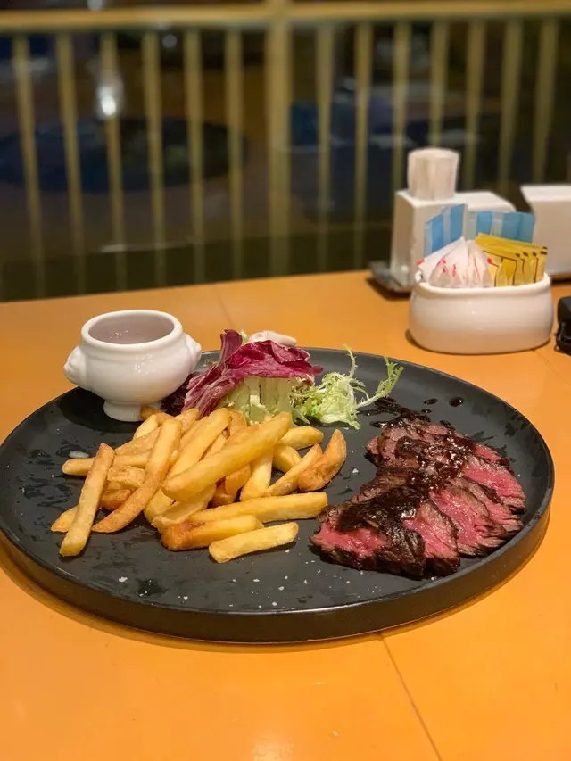 聽閒係浸會大學附近有間西餐廳環境優雅同有得食牛排🥩,一邊滿足我想食牛排一邊可以打卡既欲望🙈,除此之外,依到大家食野都比較安靜,好啱拍拖約會😍當然價錢就係中上,但拍拖約會食就好有格調。南瓜湯湯唔結身,調味上有别於平時食開既南瓜湯,多左口感,唔會話得好濃既南瓜味,偏向清甜,上菜果時會見到表面好似類似油質油既調味汁,又多左一種口感,想食下其他味既南瓜湯可以試下。63·C溫泉蛋配松露忌廉汁炒雜菌溫泉蛋好滑,可見烹調冇失誤,至於平時黑松露既食品都好味,依個松露就都出,我地將溫泉蛋同雜菌溝入忌廉汁覺得好夾到,幾好味,好快就食完。美國安格斯頂級牛腹肉牛腹肉叫左五成熟,口感適中,配搭餐廳自創既醬,酸酸甜甜咁。圖片同真實係一樣,薯條就不過不失。我覺得可以兩個人一齊食,因為肉都厚,一個人食哂就會好飽。軟殼蟹黑蒜忌廉汁意大利飯口感特別,味道有好濃既忌廉汁同奶味,飯本身係偏結身,所以食落就好豐富到味覺。至於軟殼蟹就好大隻下,肉質偏淋,好易入囗,味道而本身蟹肉味為主。依個都係如果一個人食哂都會好飽下…查看更多