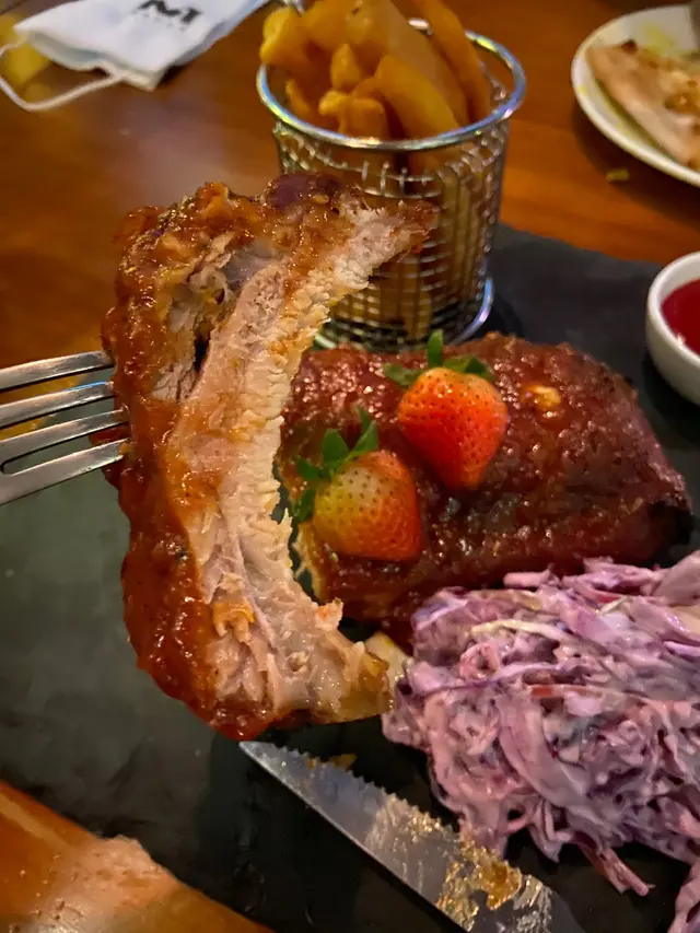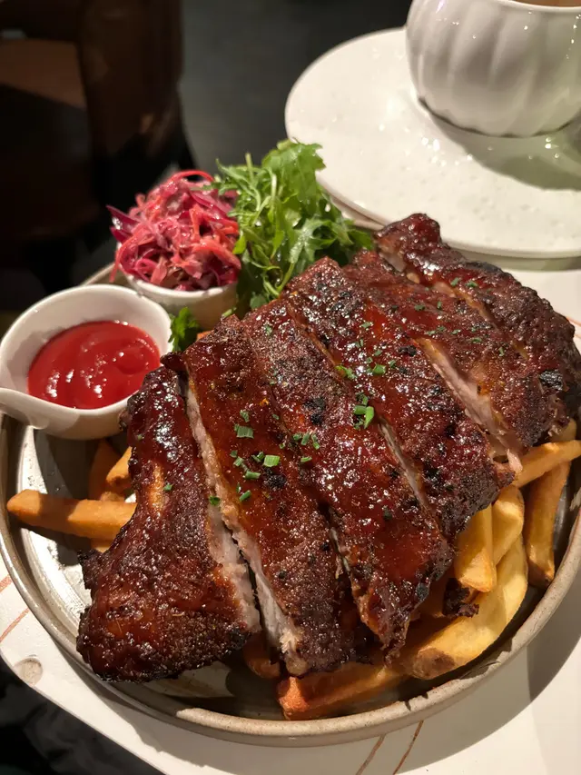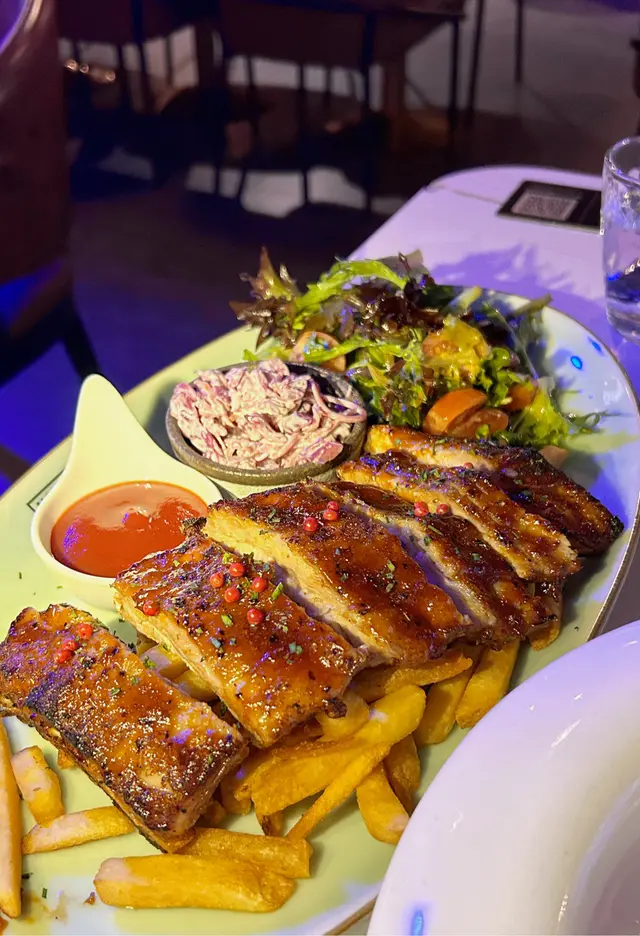 去到尖沙咀諗唔到食咩好又想chill chill哋呢間就啱晒啦餐廳晚市menu仲去到凌晨一點🥹今次我哋叫咗🔹法國Rougie 鵝油封鵪鶉腿 整法幾特別 係鹽焗嘅🥹 睇佢以為得個樣鵪鶉腿俾鵝油包住 點知焗完都好juicy😻 🔹美式煙燻醬燒西班牙黑毛豬肋骨 呢個有揀size要 0.5kg / 1kg我哋揀咗0.5kg,都有6大嚿肉質一啲都唔柴仲跟埋salad 🥗 同薯條🍟🔹北海道珍寶帶子辣肉腸XO汁扁意粉🍝呢款fusion 意粉幾特別有勝瓜,雲耳,辣肉腸,番茄乾,意粉做配料用勝瓜同雲耳又真係第一次見🤣夾埋一齊食又夾喎👍🏼辣辣地咁帶子都有三大粒,唔會話過熟😻意粉份量都唔會好少🤓…查看更多