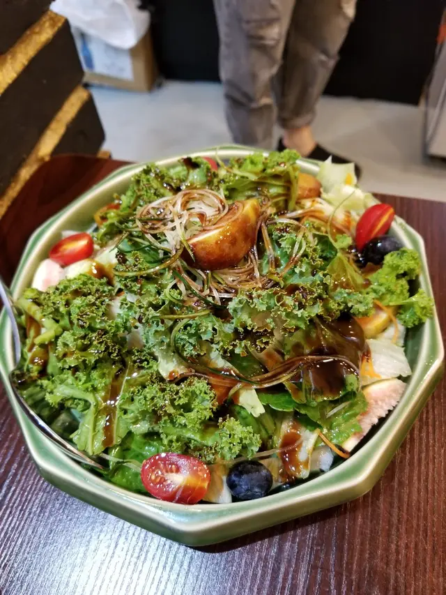 之前見不少網上平台都介紹美食提及過「丼瀛」, 知道佐敦店以雙層爆丼為主打,好吸睛! 所以便和朋友來試試看。 羽衣甘藍無花果黑醋沙律($78) 羽衣甘藍係近年大熱嘅健康食品, 高纖通便減肥好處多! 新鮮爽脆嘅羽衣甘藍和沙律菜, 加上香甜嘅無花果和藍莓, 再淋上酸甜開胃嘅黑醋汁, 作為前菜幾醒胃呢!😏 築地壽司杯($168) 壽司杯賣相精緻, 有不同口味嘅5小杯:海膽、三文魚和三文魚子、甜蝦、吞拿魚腩蓉和魷魚, 一級級擺放得整齊, 另外還有壽司卷和磯燒鮑魚, 好豐富呀! 其中最欣賞海膽、三文魚和甜蝦, 海膽鮮甜;三文魚魚油脂香;甜蝦幾大隻,鮮甜味美,不錯吃!👍🏾 鮑魚軟腍入味, 唯壽司卷略為遜色, 但整體來說性價比都算高,值得一試!😏 北海道海膽三色雙層爆丼($168) 丼飯有2層高, 上層是以海膽為主題嘅丼飯, 三文魚子鹹鮮,吞拿魚腩蓉香甜軟滑, 北海道海膽鮮甜味美,不會水汪汪,夠新鮮! 下層是海膽蒟蒻沾麵, 蒟蒻沾麵高纖低熱量,爽滑口感,又好掛汁, 三文魚子加上海膽汁,食落好creamy, 加上青瓜絲一起吃,食落無咁膩! …查看更多