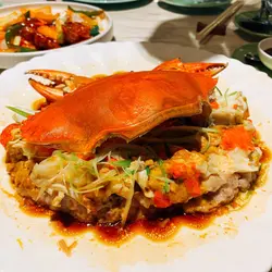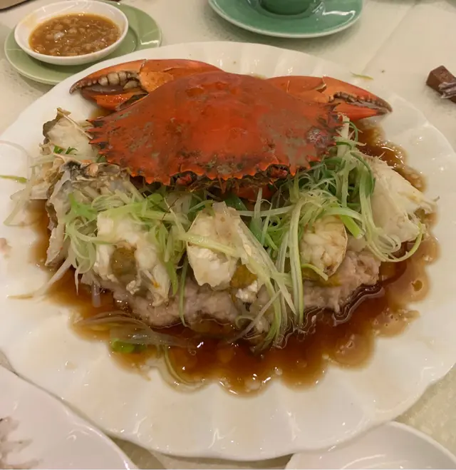 因掛八號風球,臨時轉咗嚟呢度食,乘機遊覽戲曲中心。餐廳環境寬闊,清幽舒服,服務也周到。招牌扁皮鴨服務員係我們面前切,切得薄薄的。先就甘食,皮脆肉滑。然後另一碟加包皮、配菜、醬汁,包在一起食,味道也不錯。肉餅蒸蟹圈肉蟹大大隻啖啖肉,有不少膏,肉餅也好好味。招牌杏汁燉白肺湯濃濃的很好味,豬肺豬軟骨我也食清光,很滿足。上湯焗龍蝦伊麵完隻龍蝦伊麵,肉質鮮美彈牙,啖啖肉,正!普寧蘿蔔灌漿很喜歡這小食,皮薄炸得脆脆的,蘿蔔灌漿味道好及幾特式。良朋共聚4人套餐:- 普寧蘿蔔灌漿-燒腩仔拼叉燒皇-上湯焗龍蝦伊麵- 杏汁燉白肺湯-頭抽煎鯧魚片-花膠魚蛋紹菜煲-精美糕點…查看更多